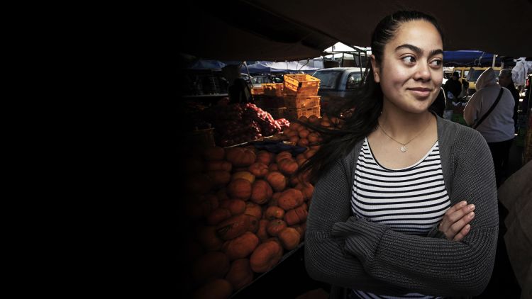 She’s been coming here every Saturday for as long as she can remember. The weekly trip to buy fruit and vegetables is part of her family’s routine. Her parents came from Tonga to Auckland, where they’ve raised five children. She’s the eldest. She’s lived in Papatoetoe her whole life. “Home life is really quite traditional. We’re not allowed to speak English, so it’s full on Tongan.”