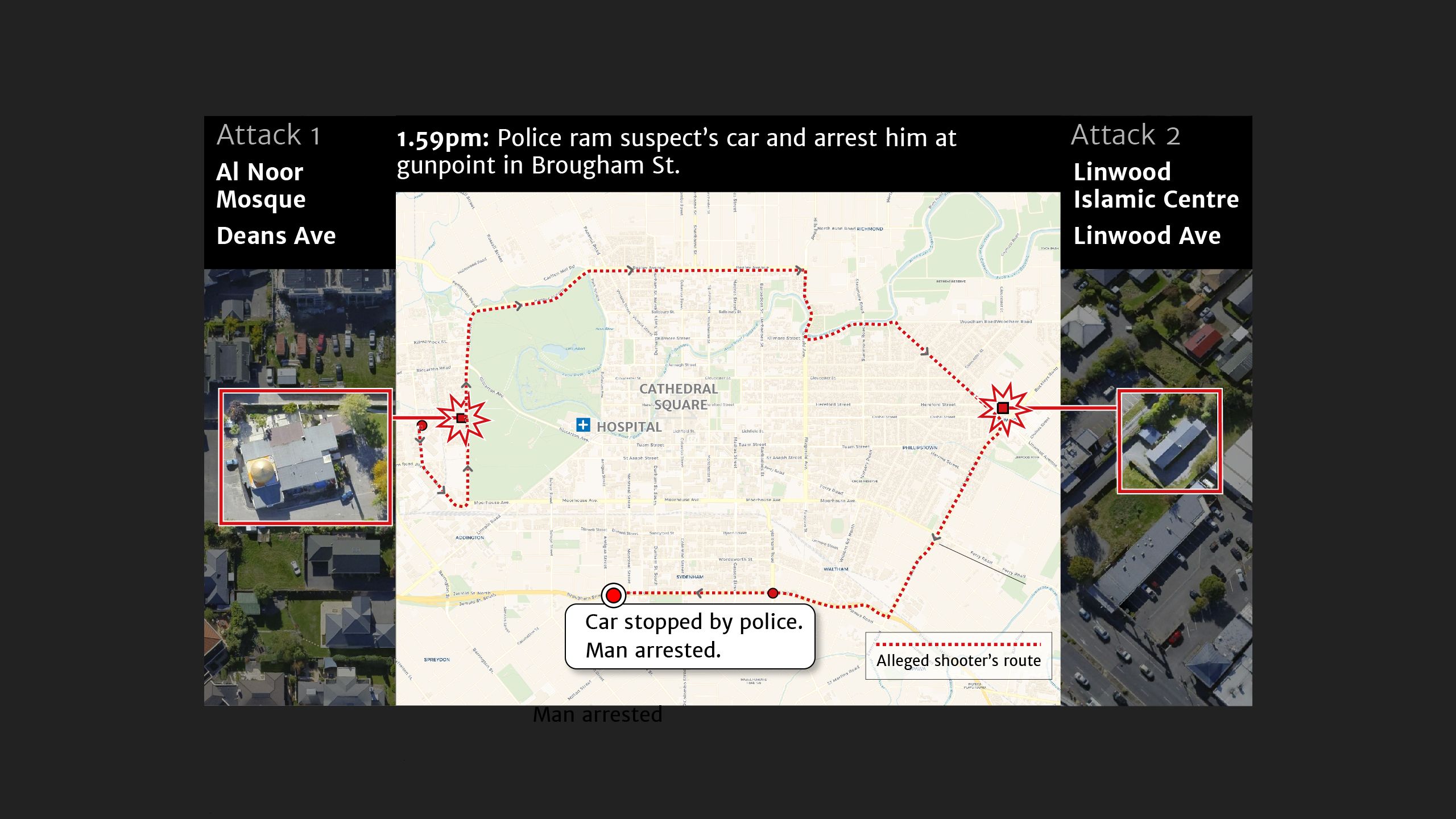 The main suspect had a gun licence and had obtained firearms legally, she said. Five guns were used in the attack including two semi-automatic weapons and two shotguns. A lever action firearm was also found. More work would be done to trace the firearms but one thing was clear, she said: “Our gun laws will change.”