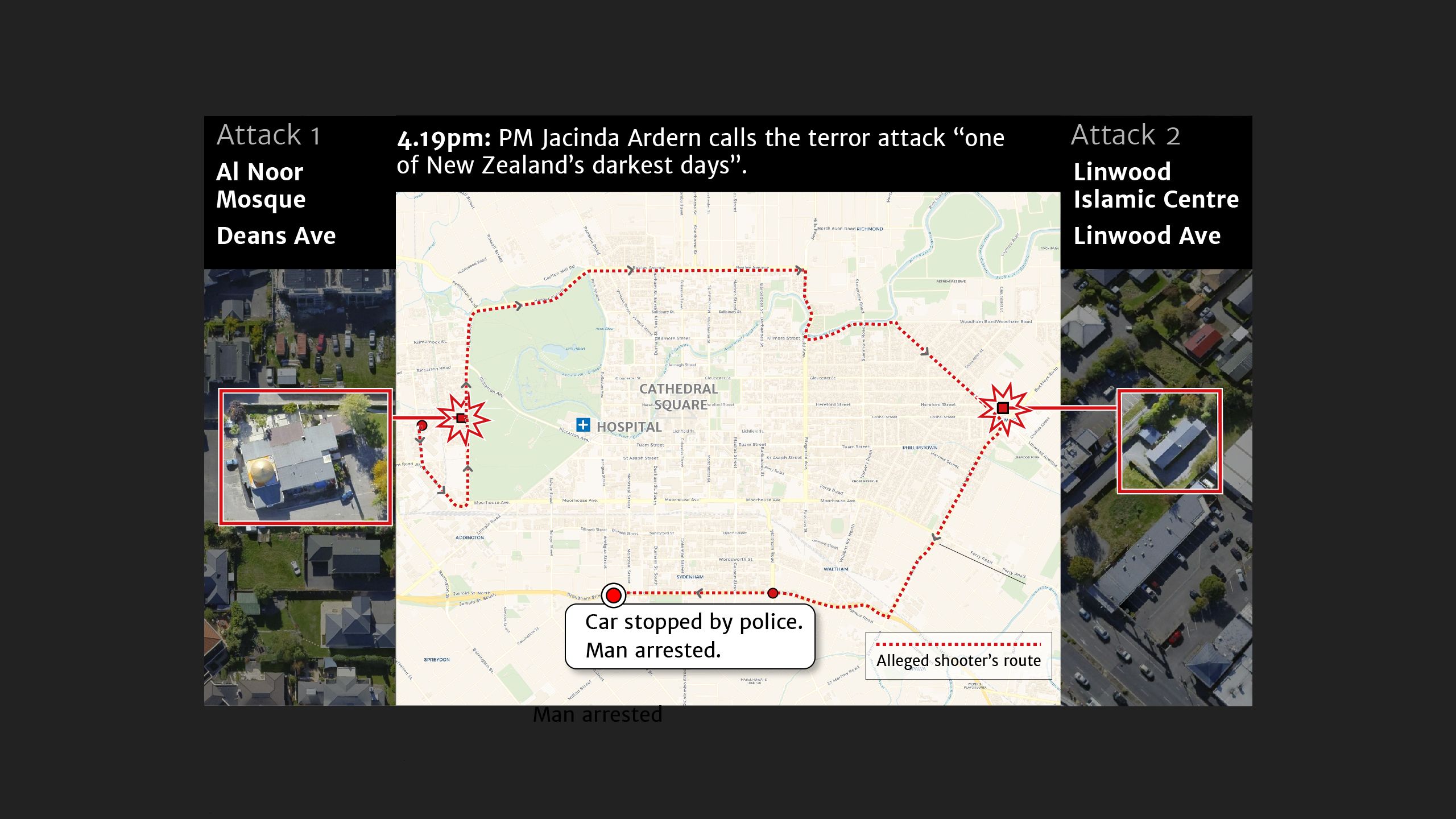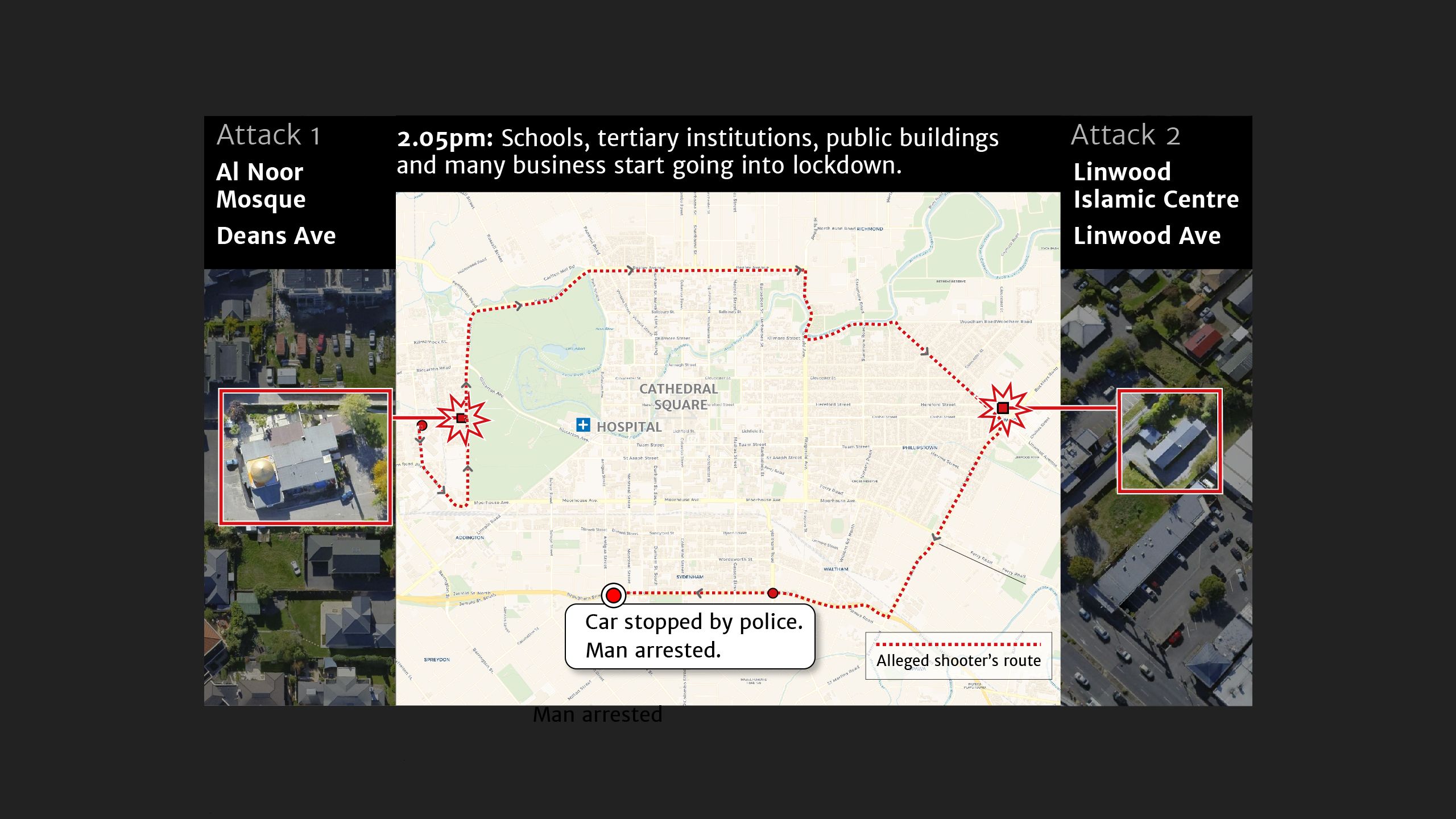The immediate crisis in Christchurch continued for much longer of course, with lockdowns and security scares – and speculation about the existence of more than one gunman – continuing into the evening.