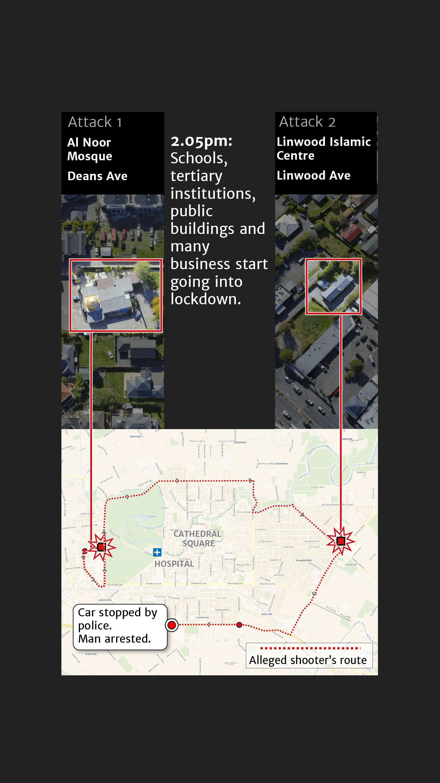 Then, it became clear the incident was centred on a mosque. Gun shots had been heard. Roads were being closed. People had seen bodies lying on the ground. There was an active shooter. The Linwood mosque was also affected.