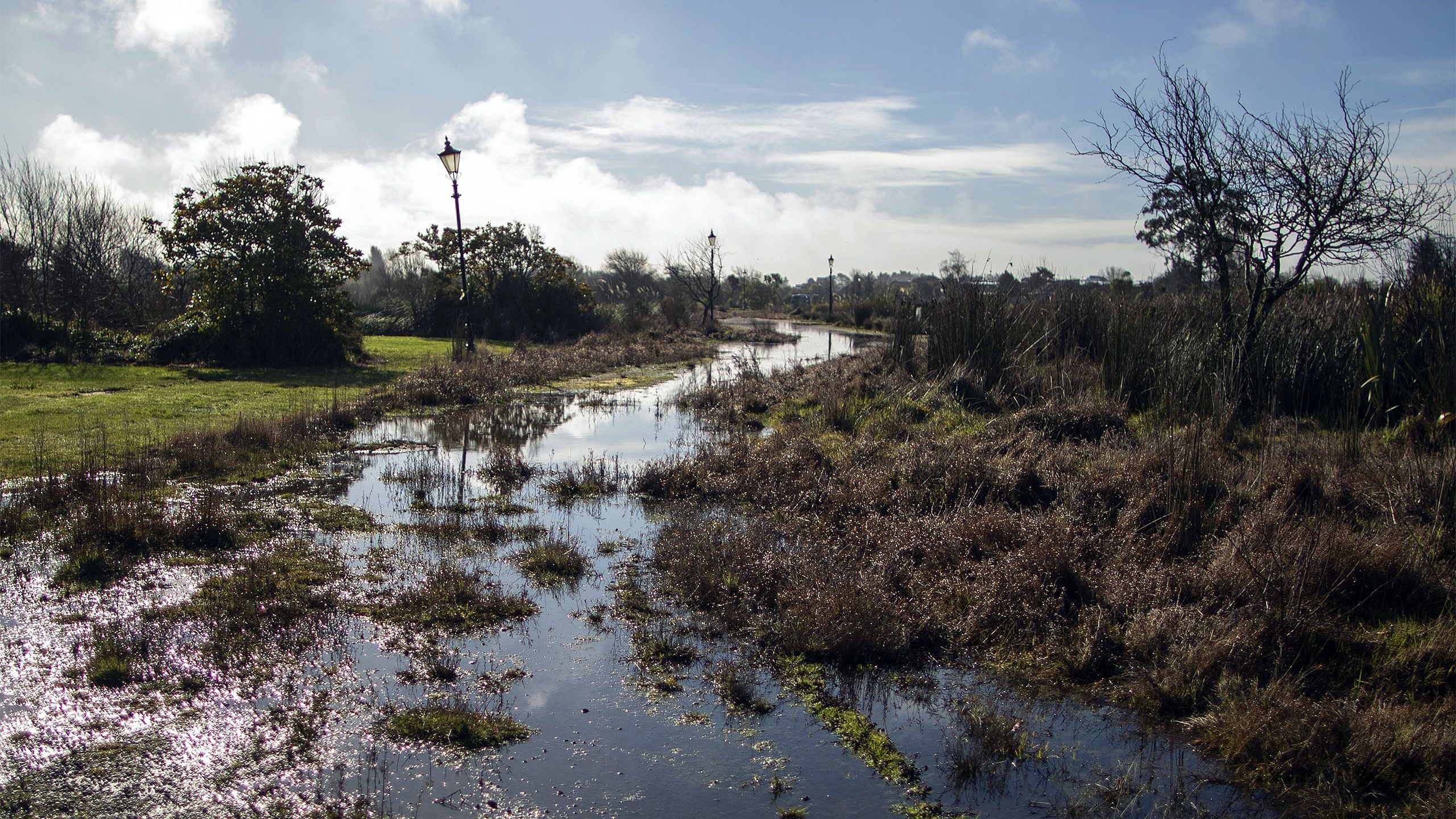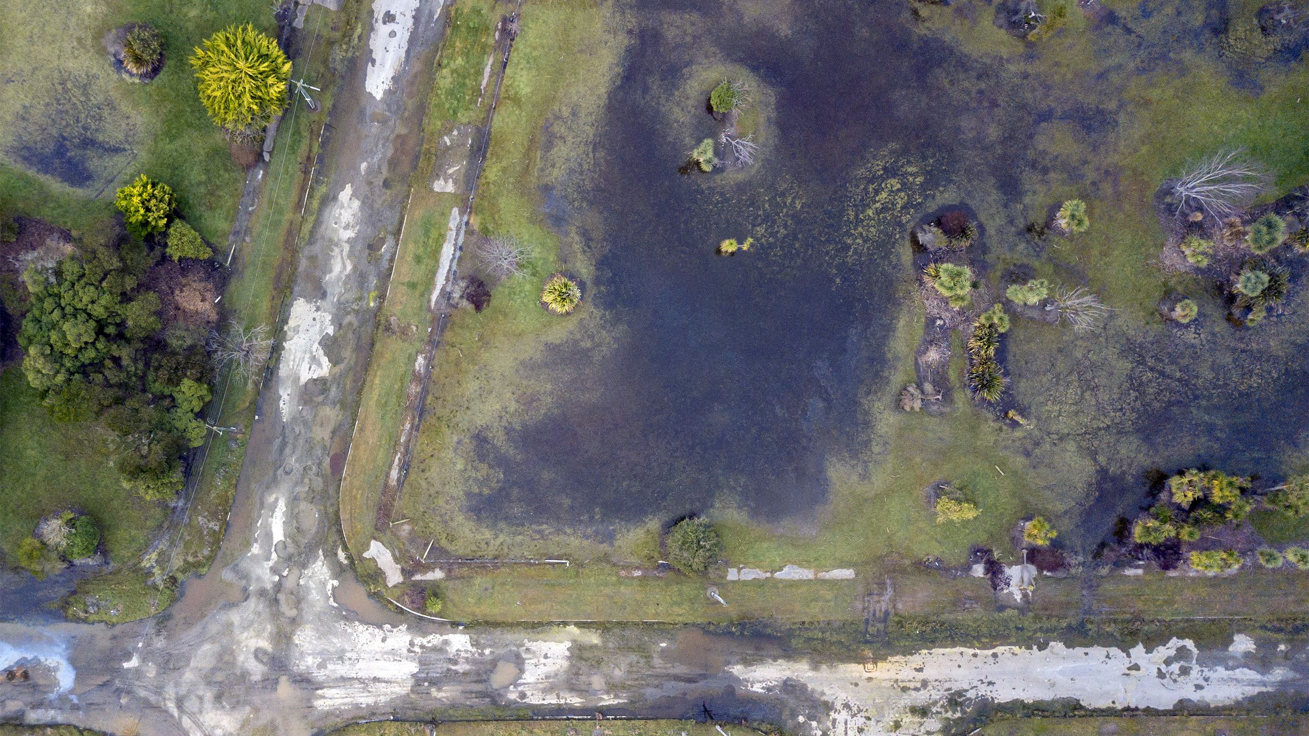 It hasn’t rained for more than a week, but large parts of Bexley are underwater. The former suburb backs onto a wetland, and the two have started to merge together. Swampy plants and wandering pukeko have spilled over into fading remnants of suburbia. Ducks swim through what used to be an intersection, the road hidden deep beneath the dazzling algal patterns forming on the stagnant water.