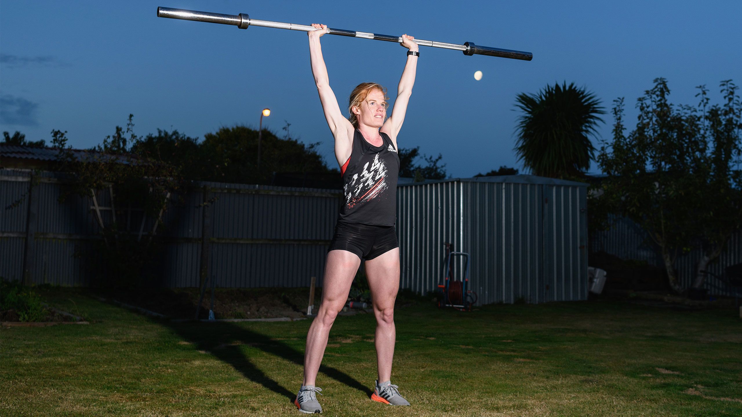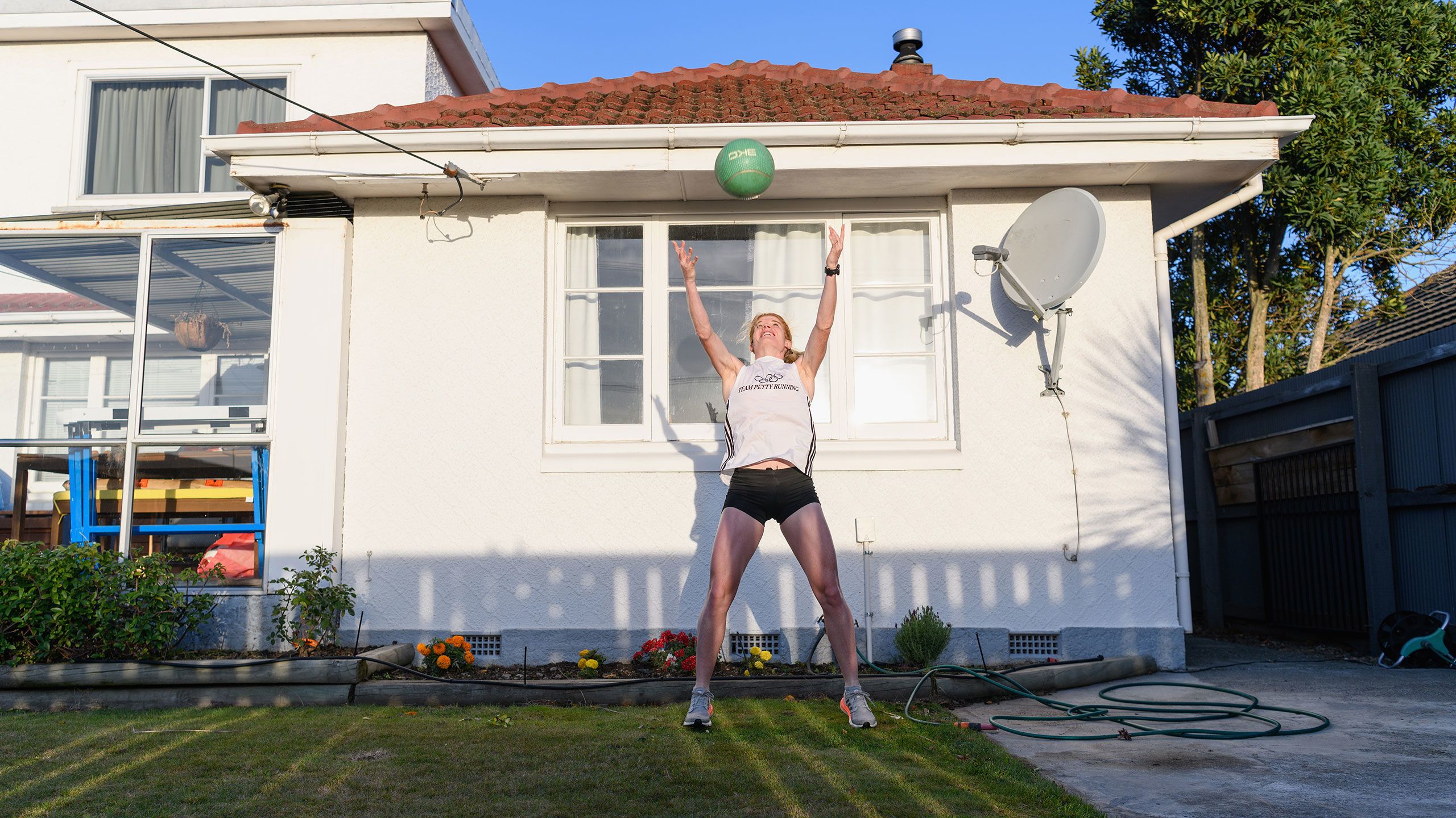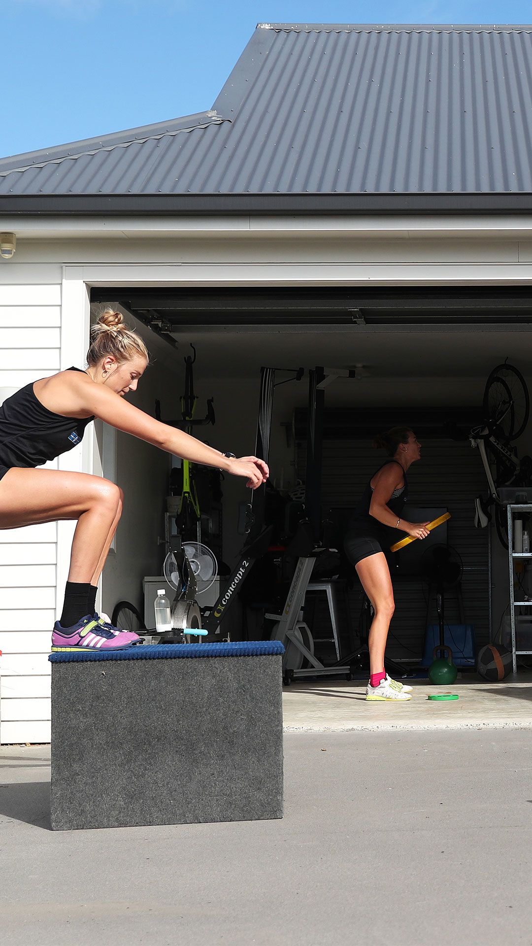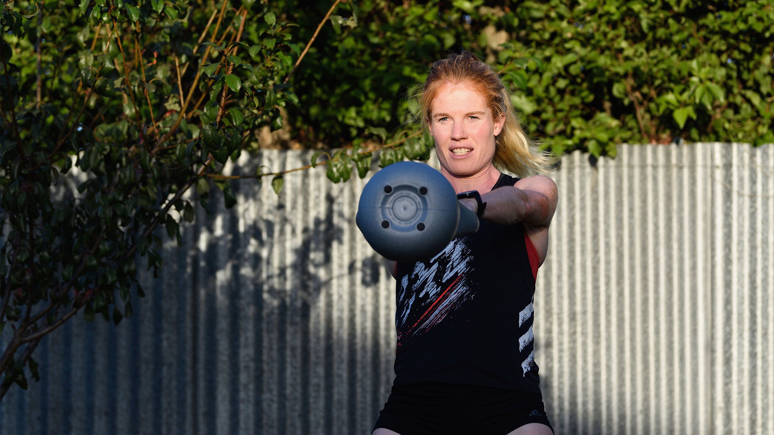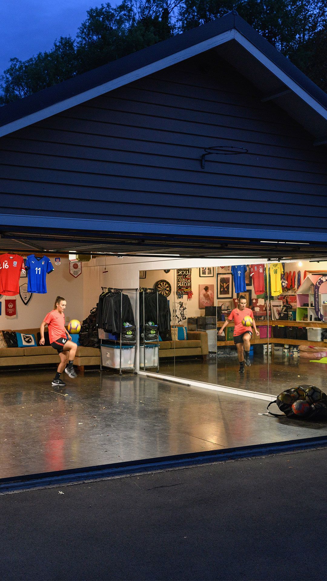 /**span.lightHighlight**/She’s got a rebound net in the backyard for skillwork, while the trampoline is useful for stability exercises, and the garage - already set up as a dance studio - now accommodates a fair bit of gym equipment as well./*/*