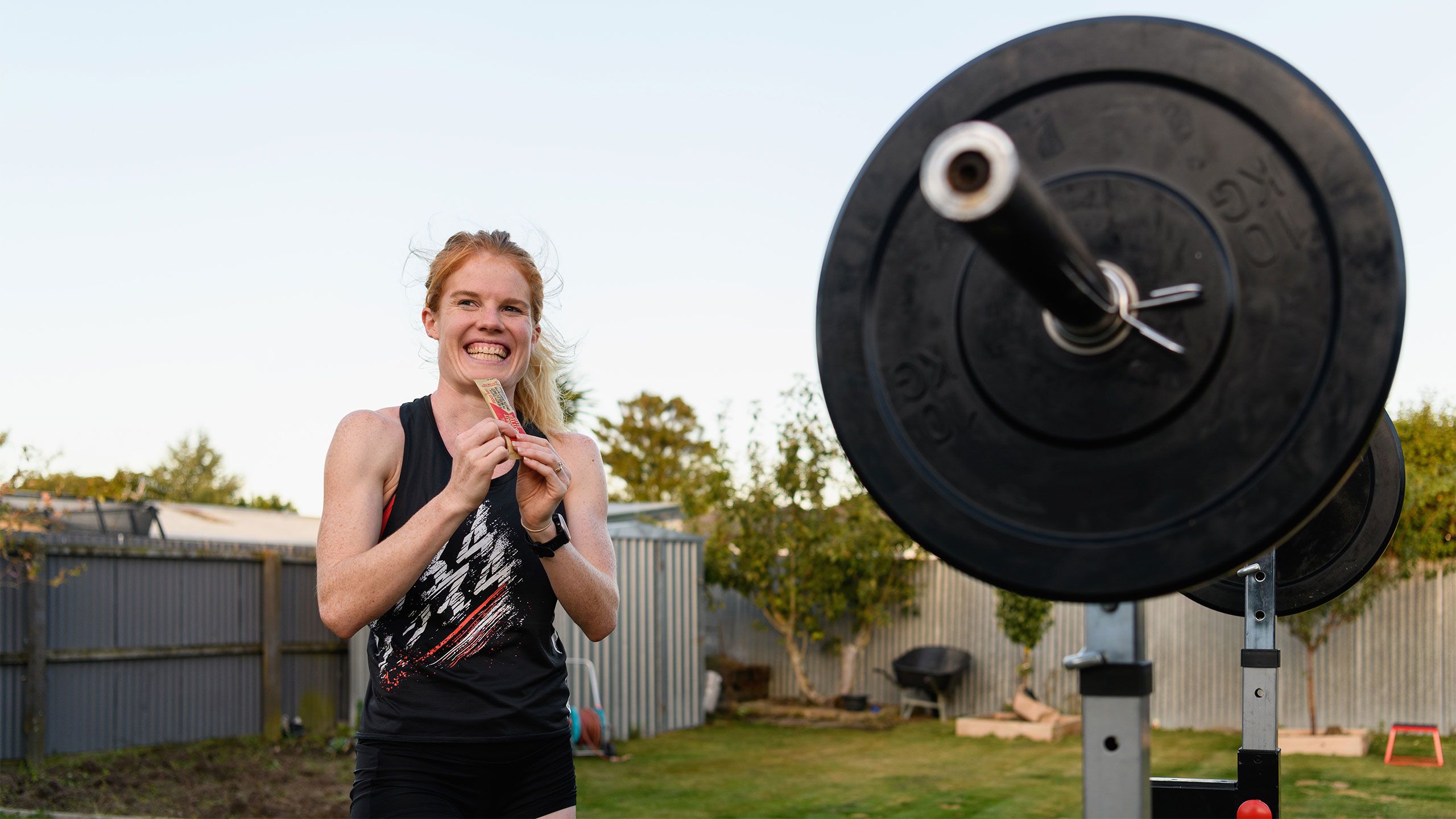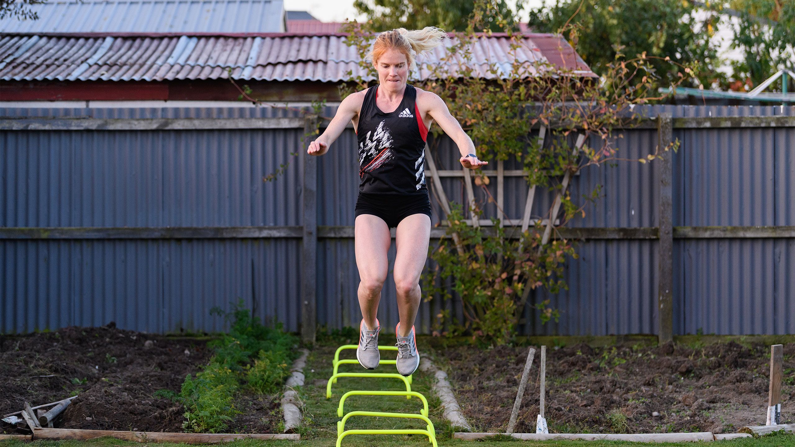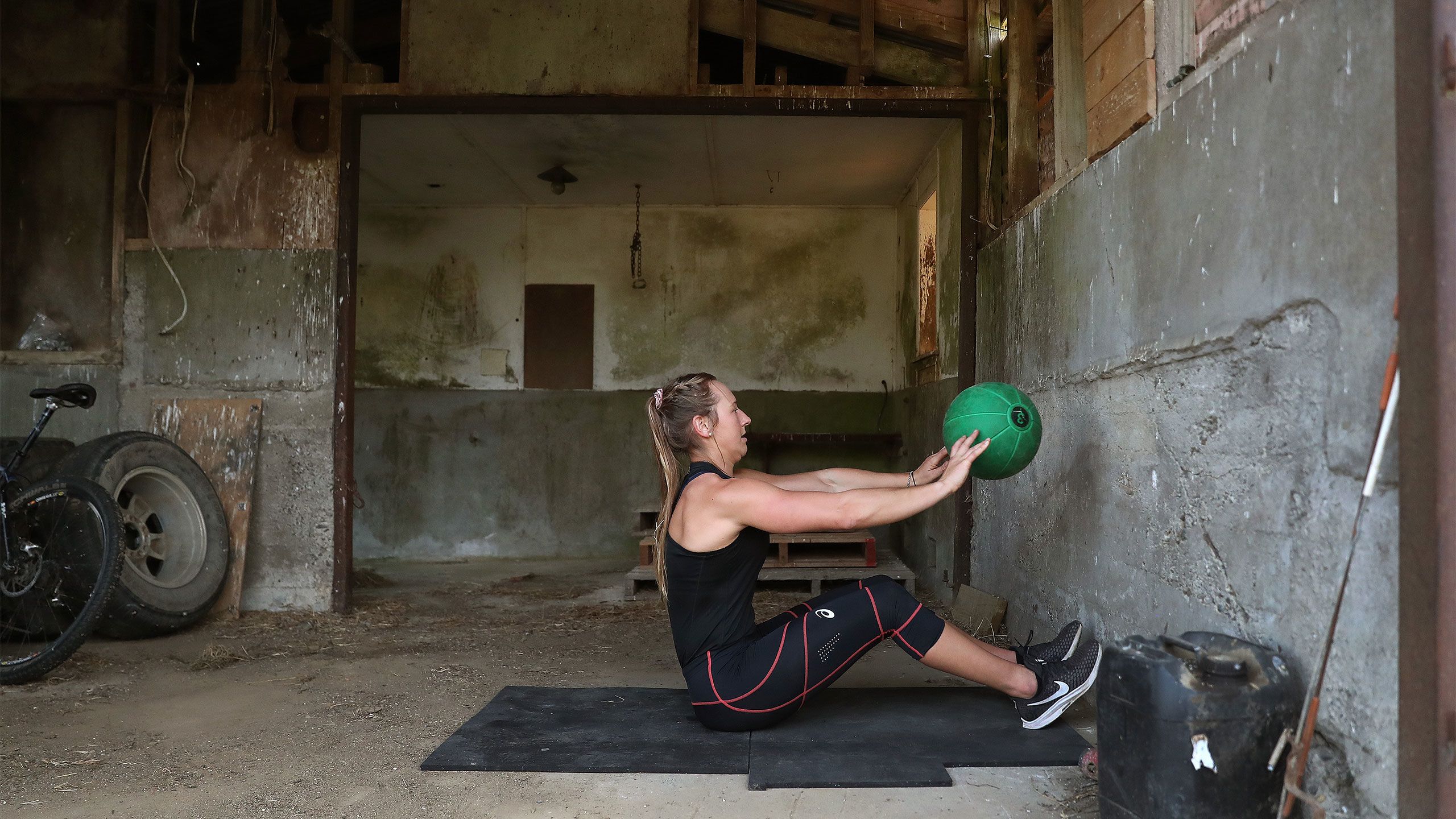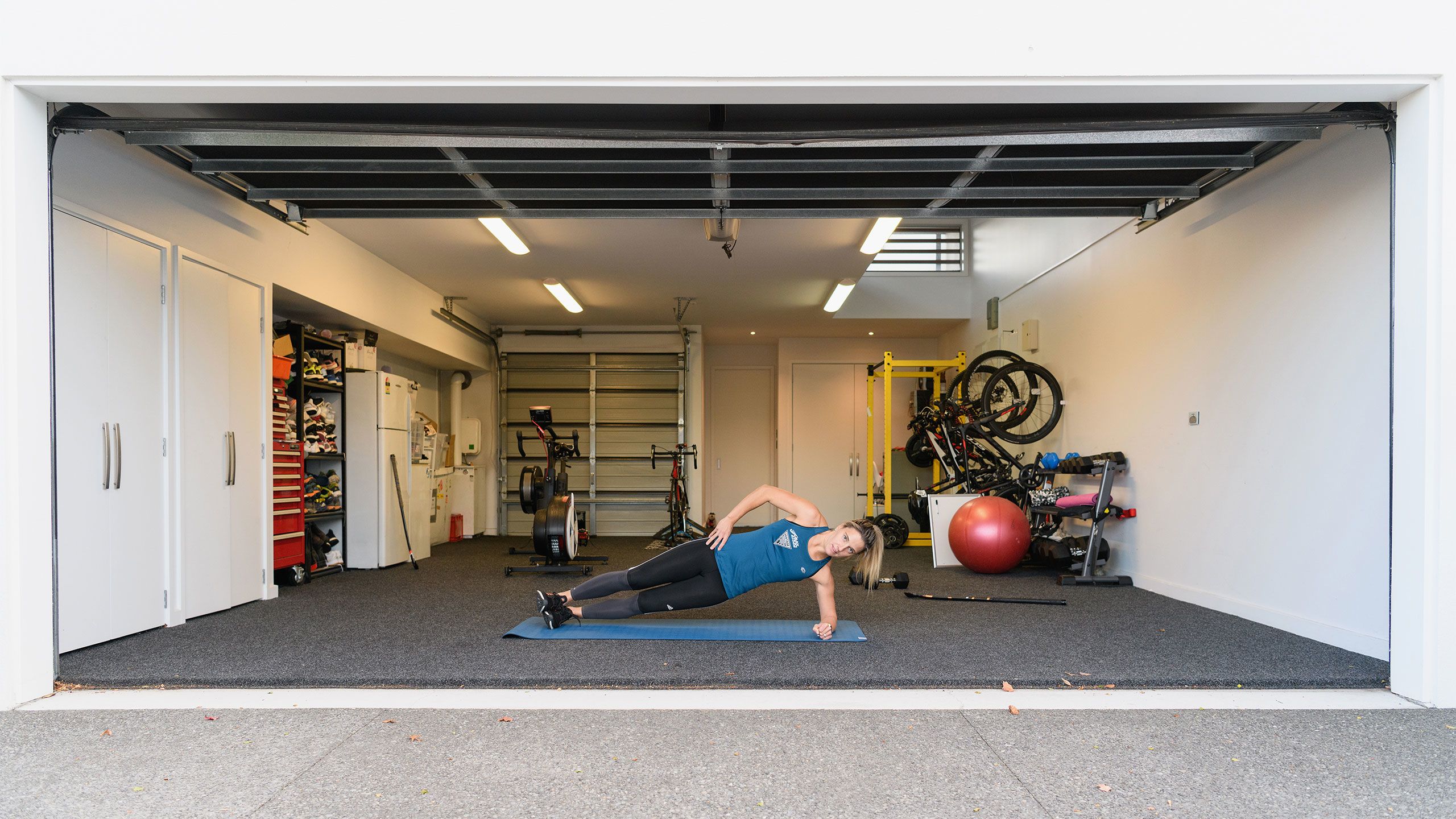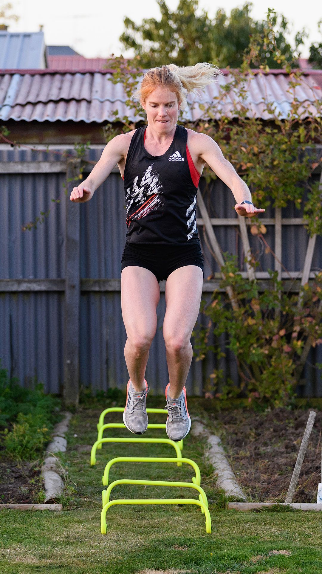 /**span.lightHighlight**/She’s got a rebound net in the backyard for skillwork, while the trampoline is useful for stability exercises, and the garage - already set up as a dance studio - now accommodates a fair bit of gym equipment as well./*/*