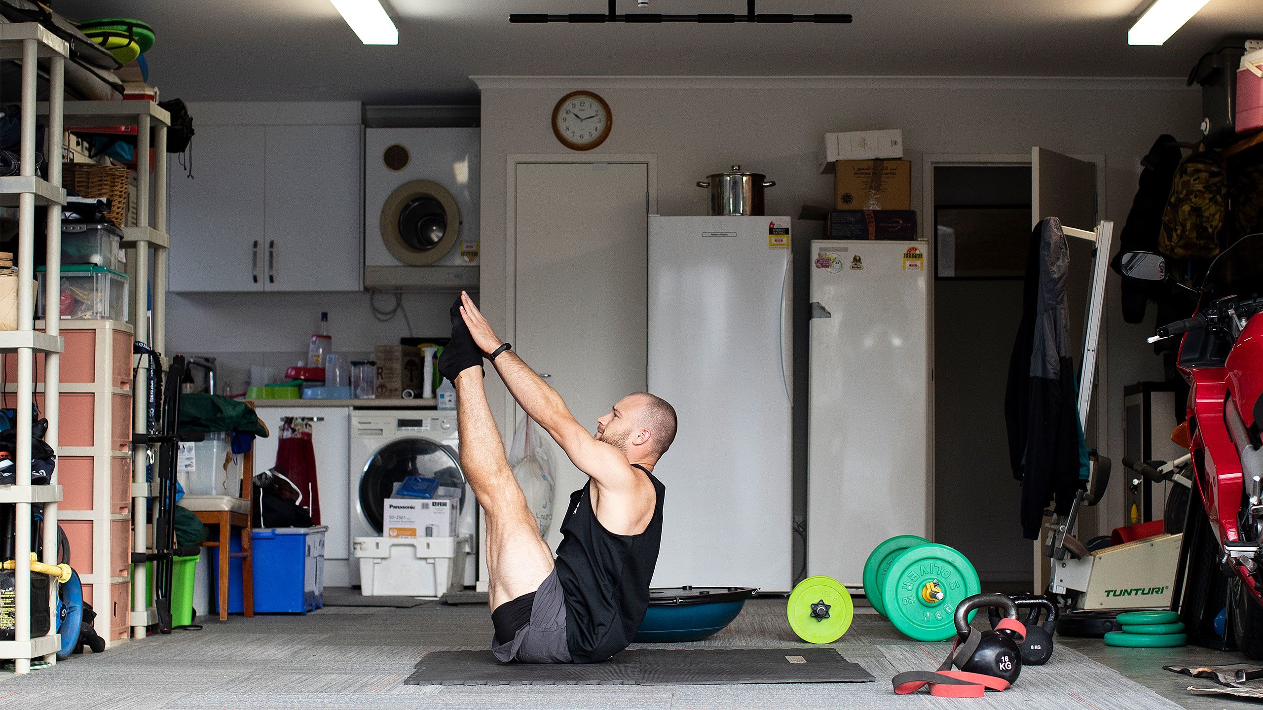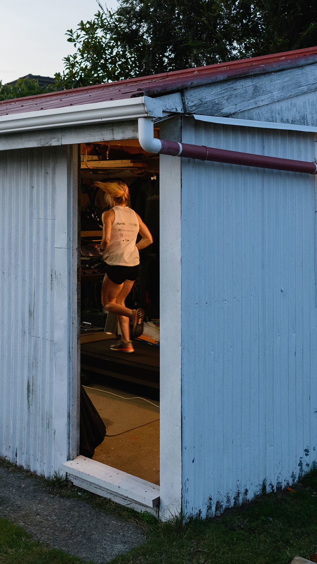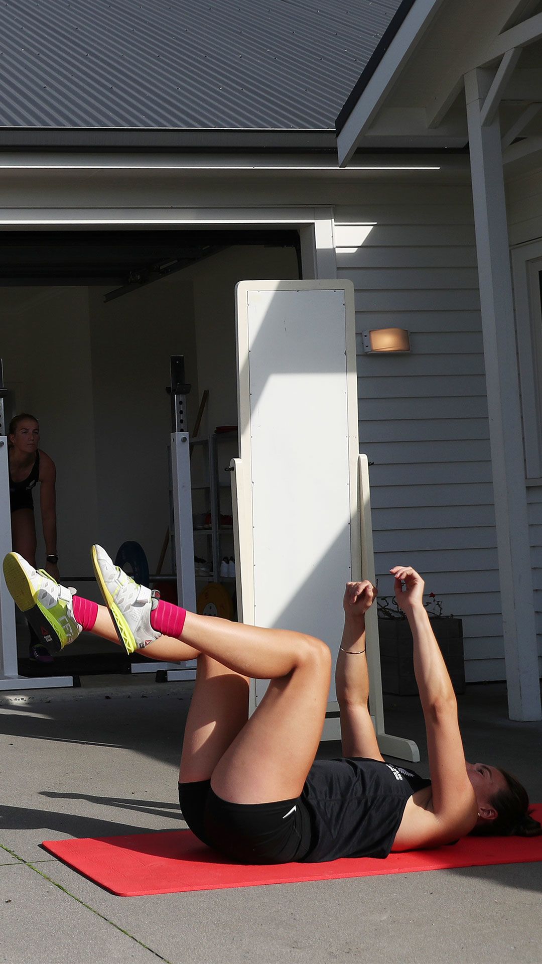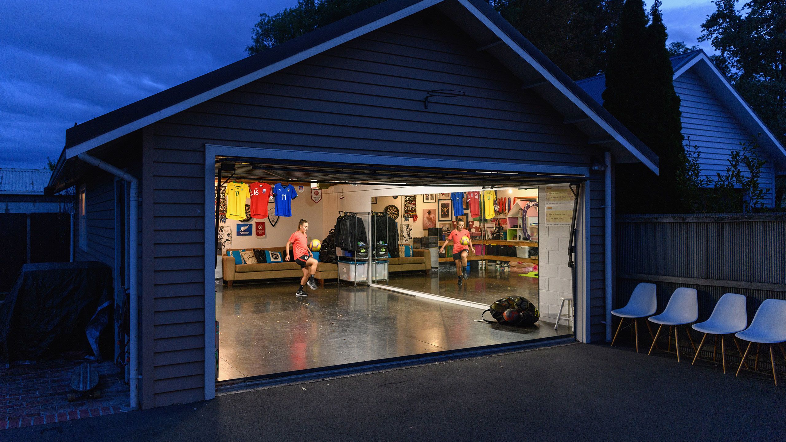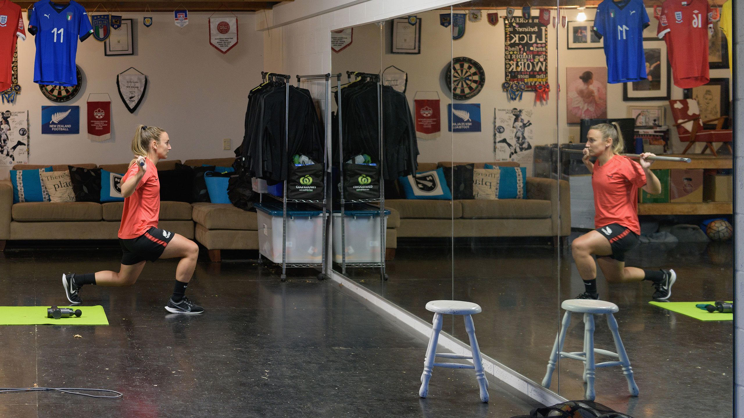 /**span.lightHighlight**/She’s got a rebound net in the backyard for skillwork, while the trampoline is useful for stability exercises, and the garage - already set up as a dance studio - now accommodates a fair bit of gym equipment as well./*/*