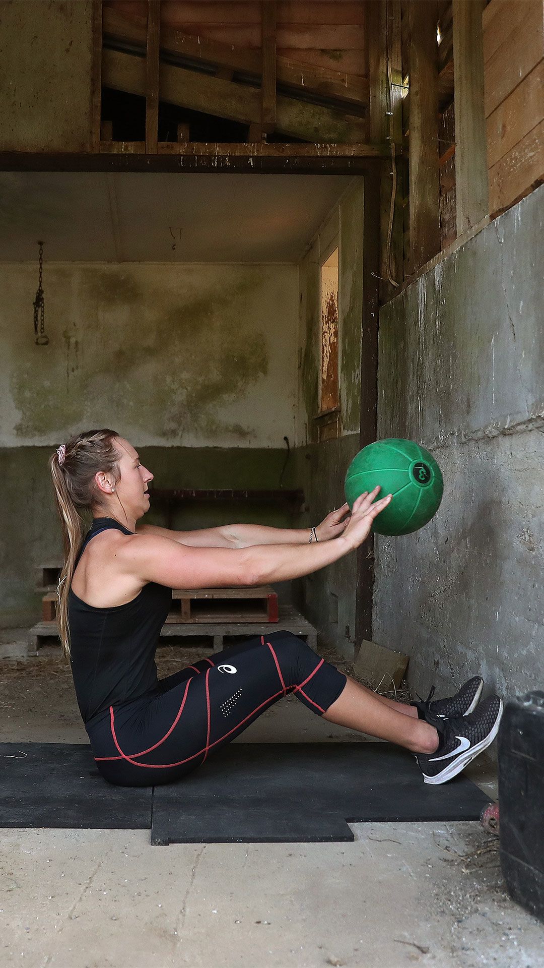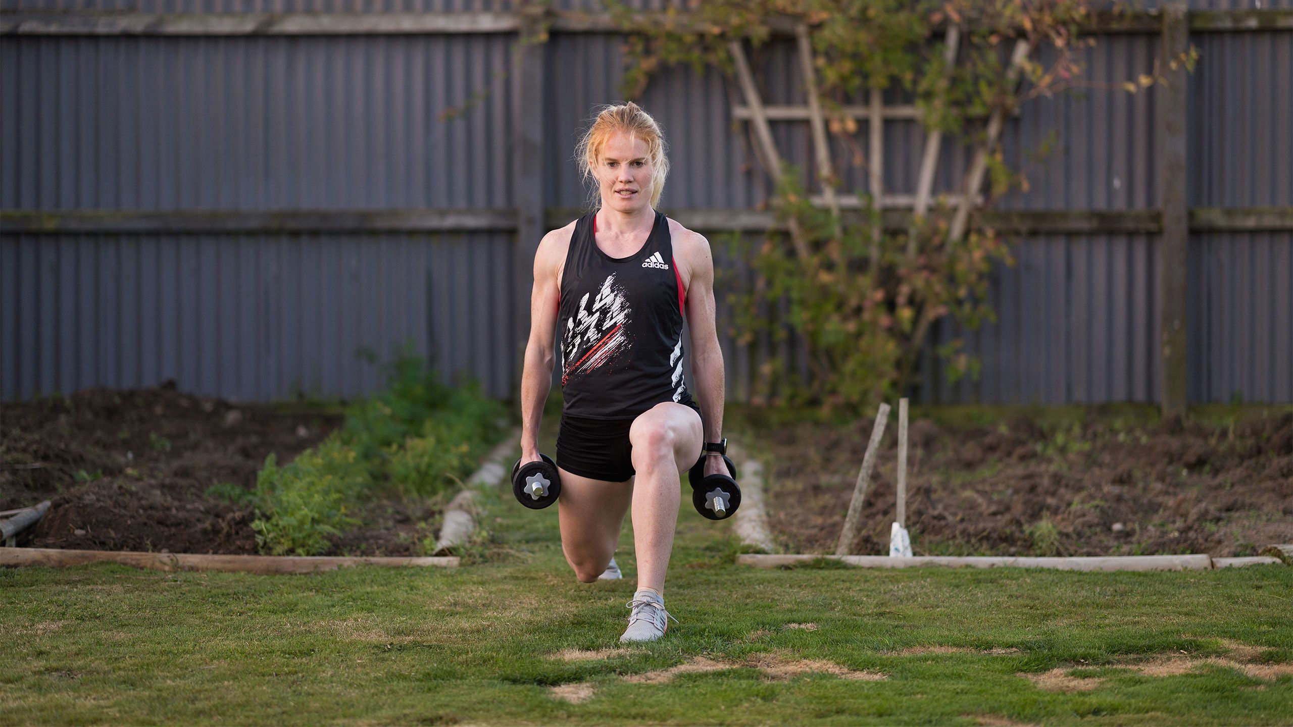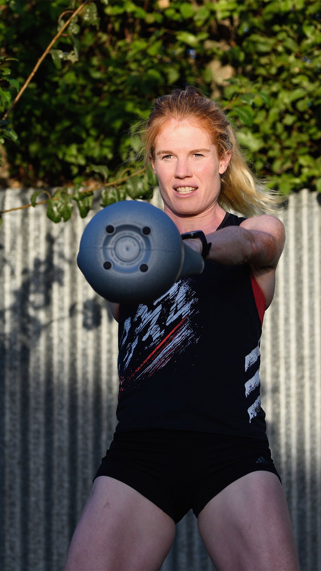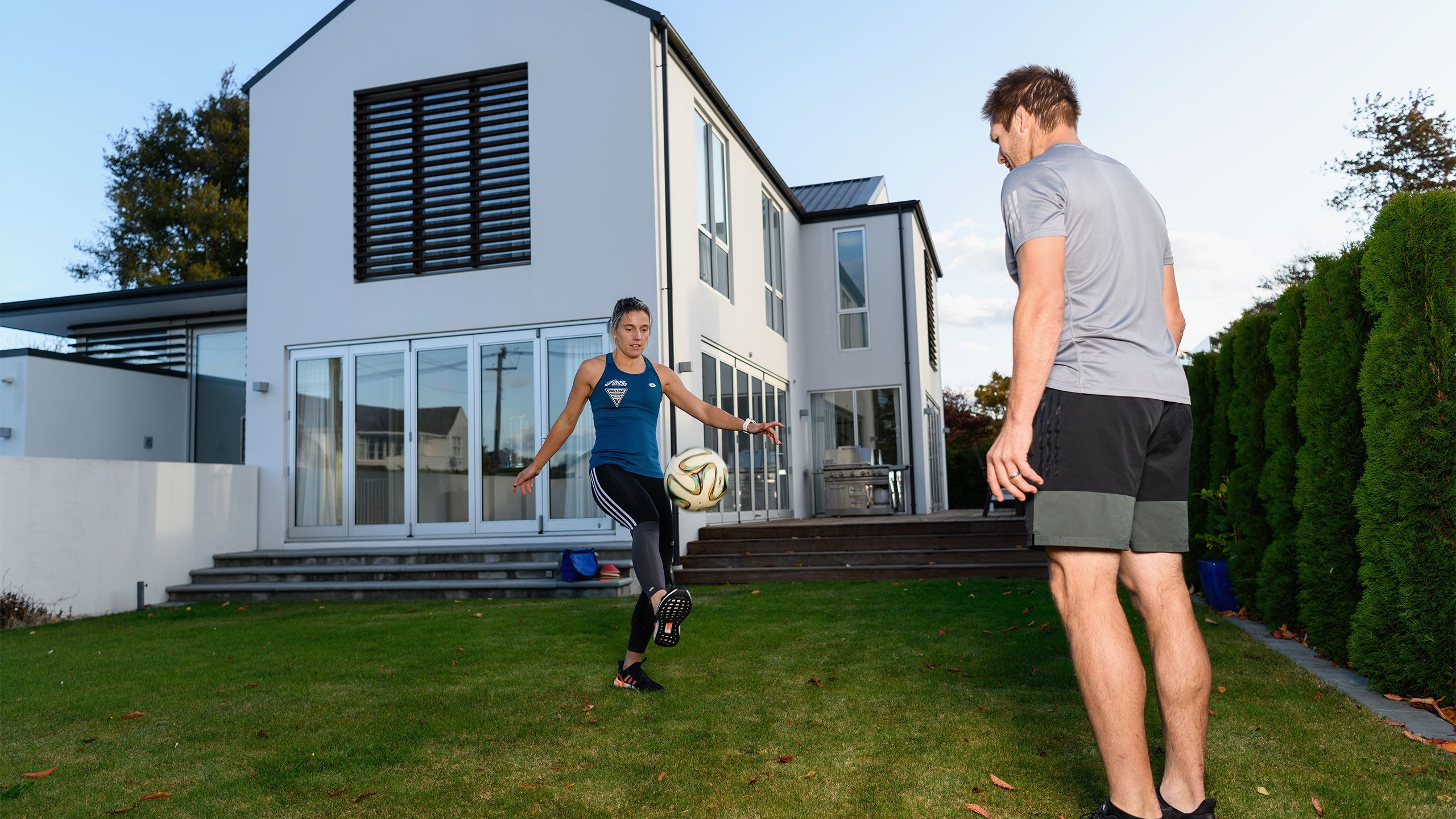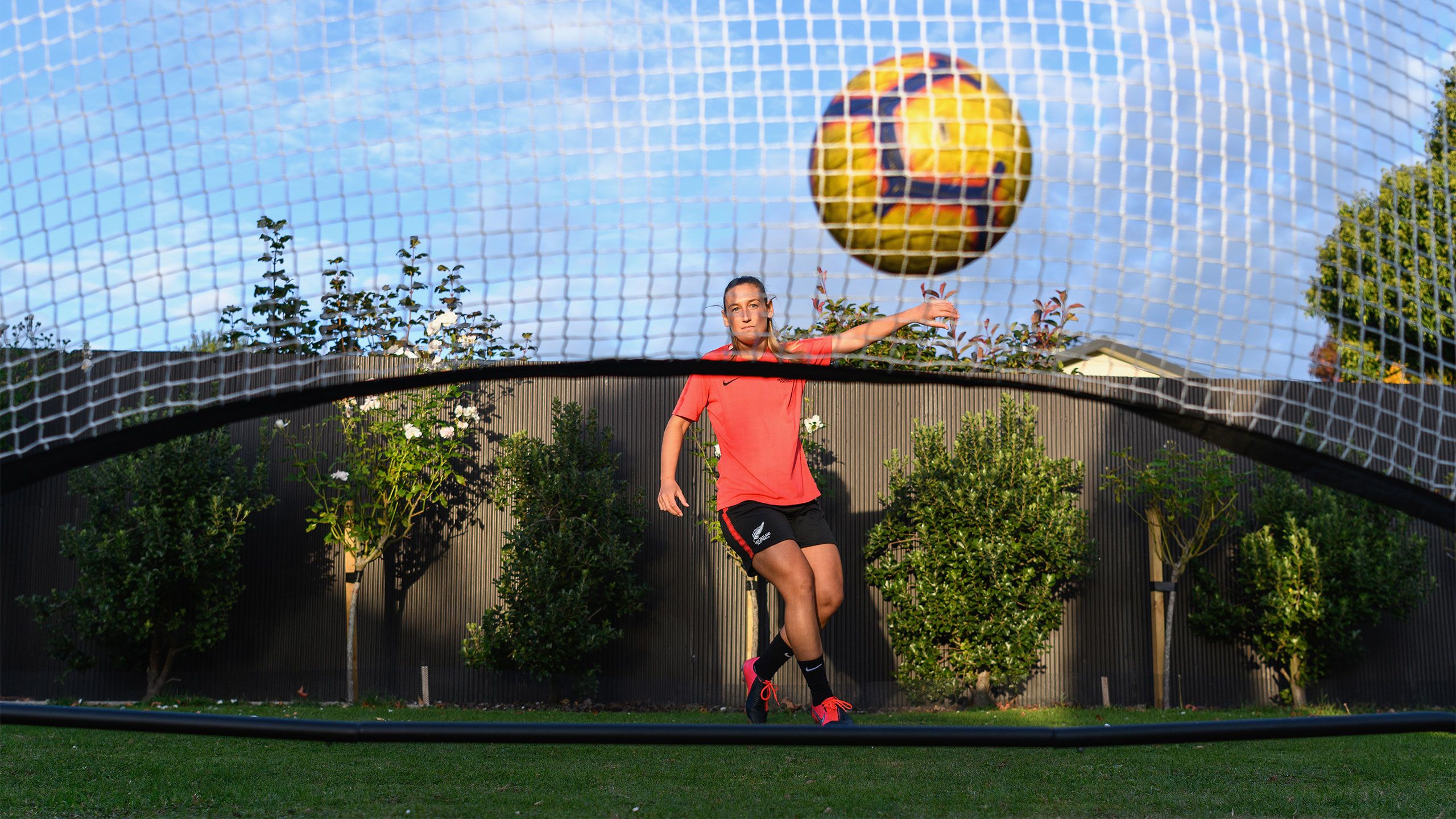 /**span.lightHighlight**/She’s got a rebound net in the backyard for skillwork, while the trampoline is useful for stability exercises, and the garage - already set up as a dance studio - now accommodates a fair bit of gym equipment as well./*/*