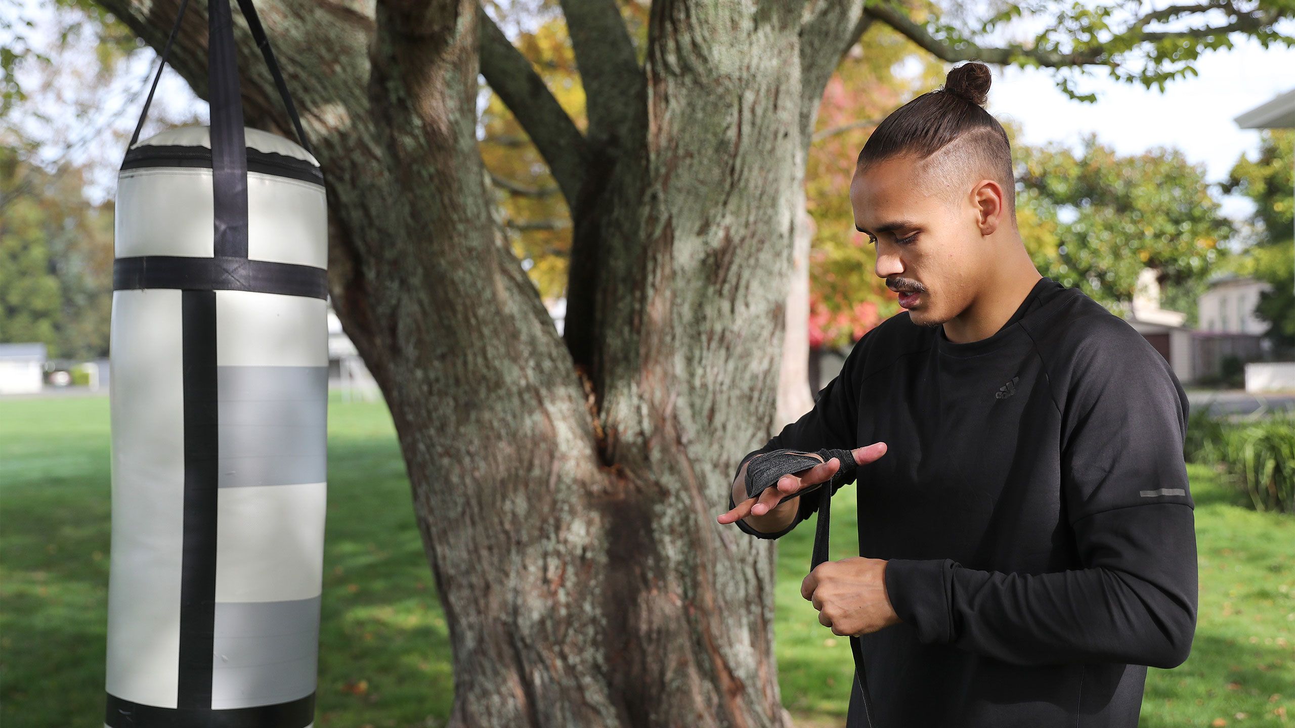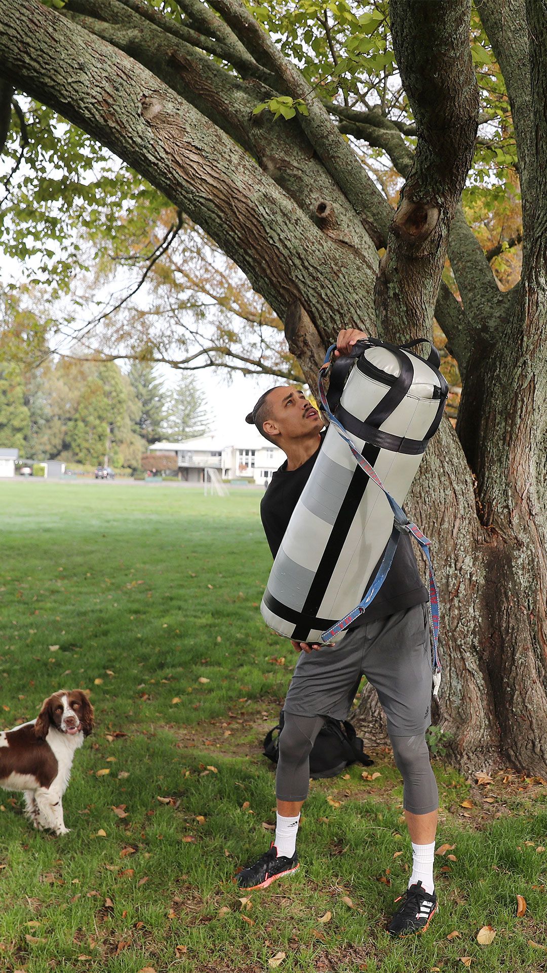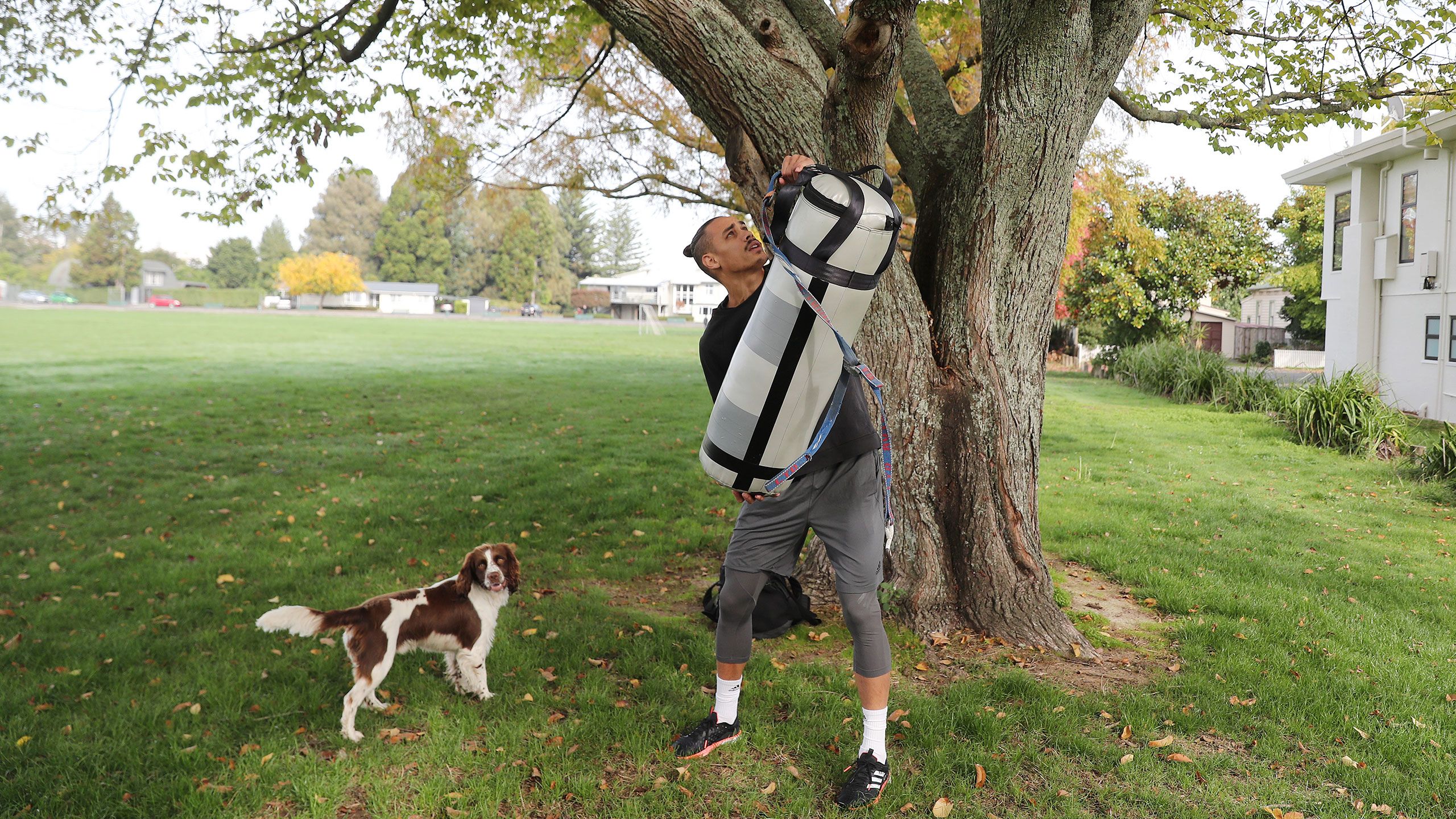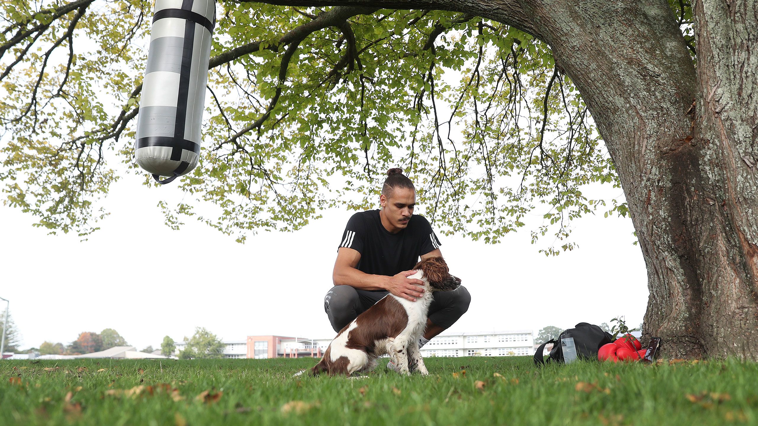 /**span.lightHighlight**/Each day, Nyika and his dog George, an English springer spaniel, walks down the road to his old high school, Hamilton Boys, with a boxing bag over his shoulder. He’s found a sturdy tree inside the grounds of the school that he can set up his bag and get to work./*/*