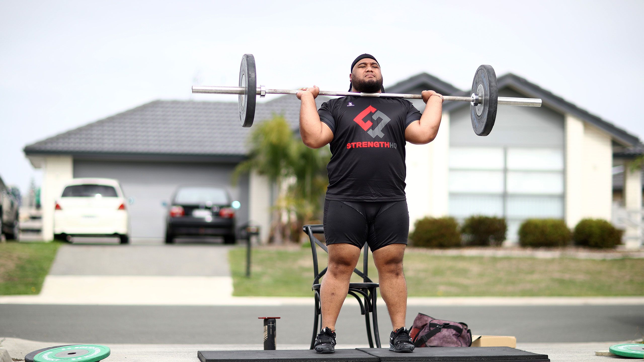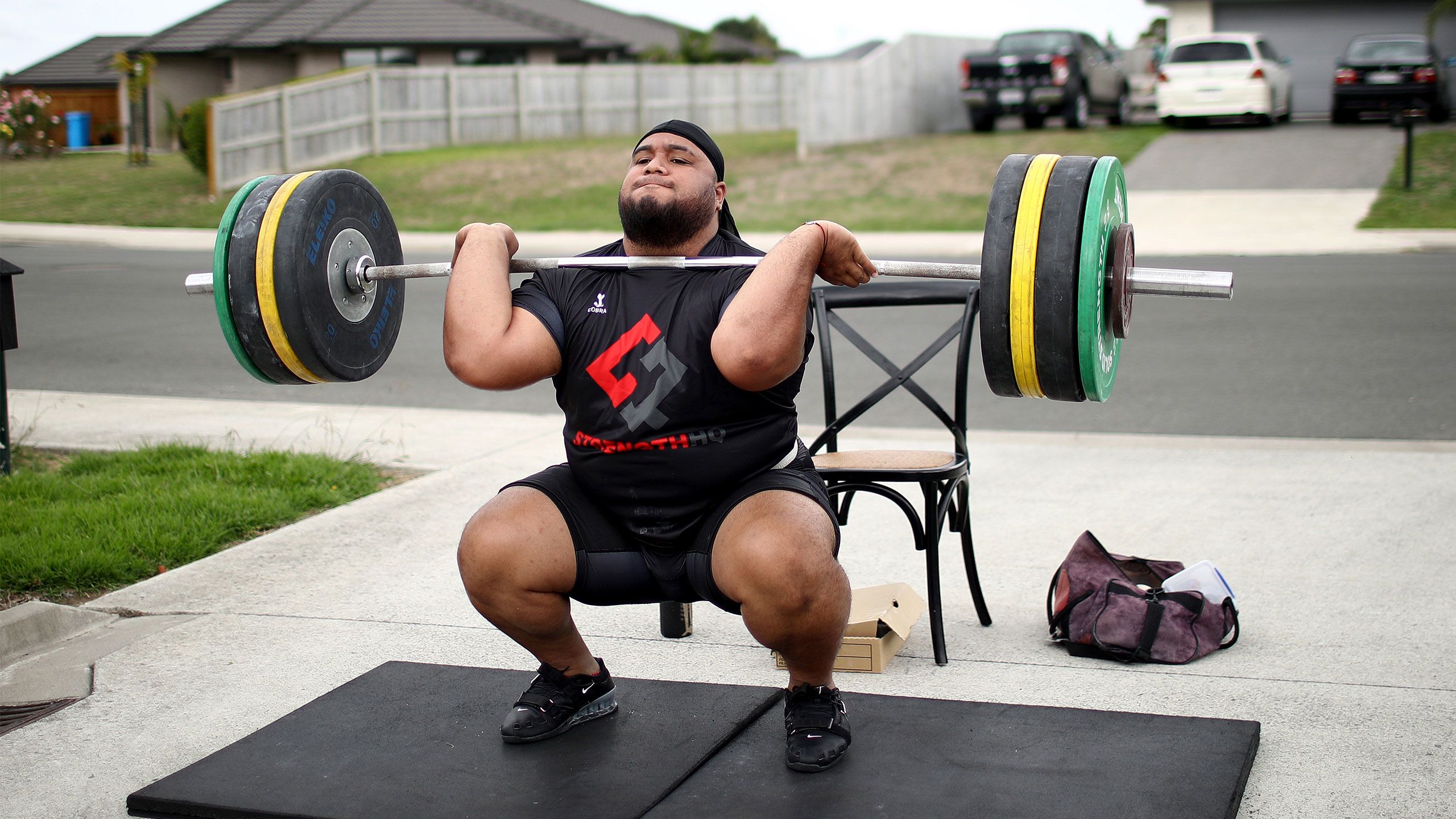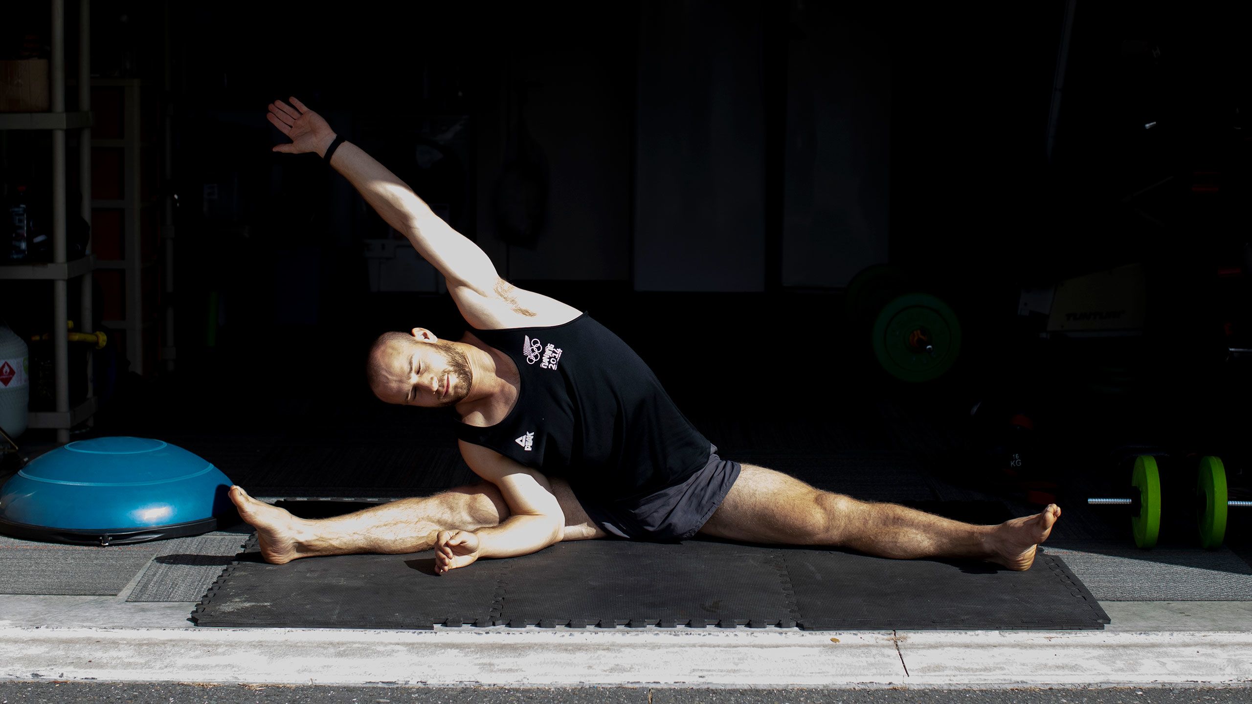 /**span.lightHighlight**/So, each day (weather permitting) the Commonwealth Games gold medallist sets up his mats at the end of the driveway - the only flat slab of concrete available to him - and gets to work./*/*