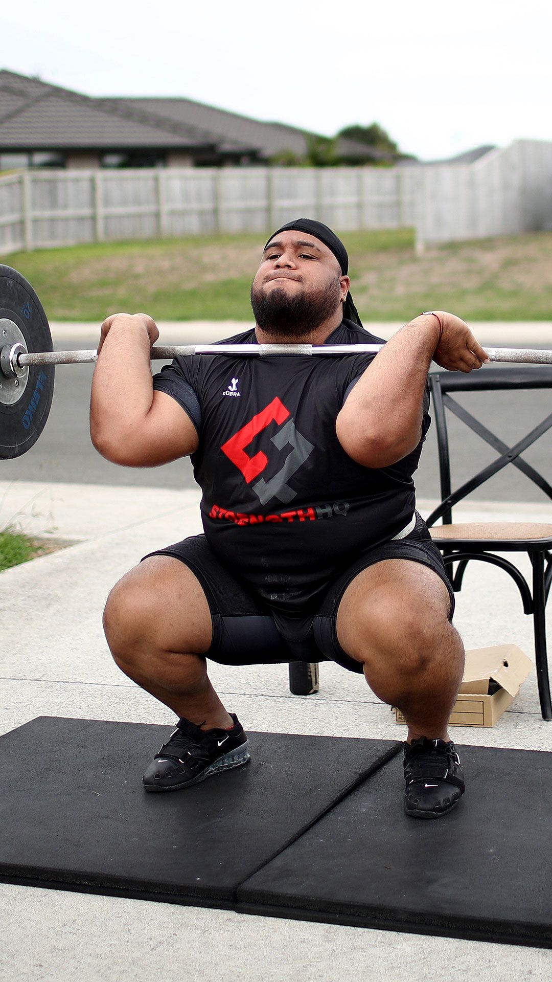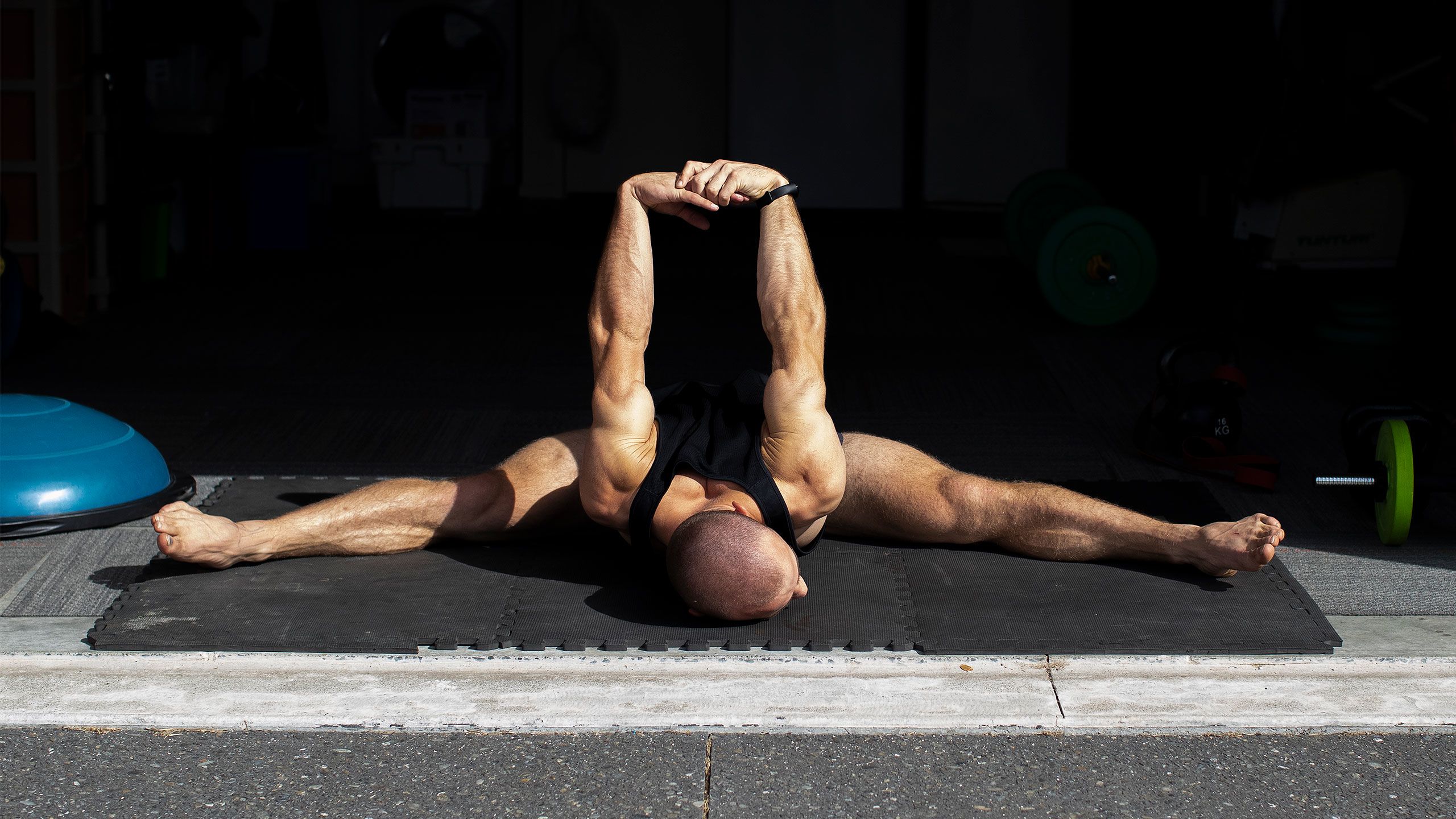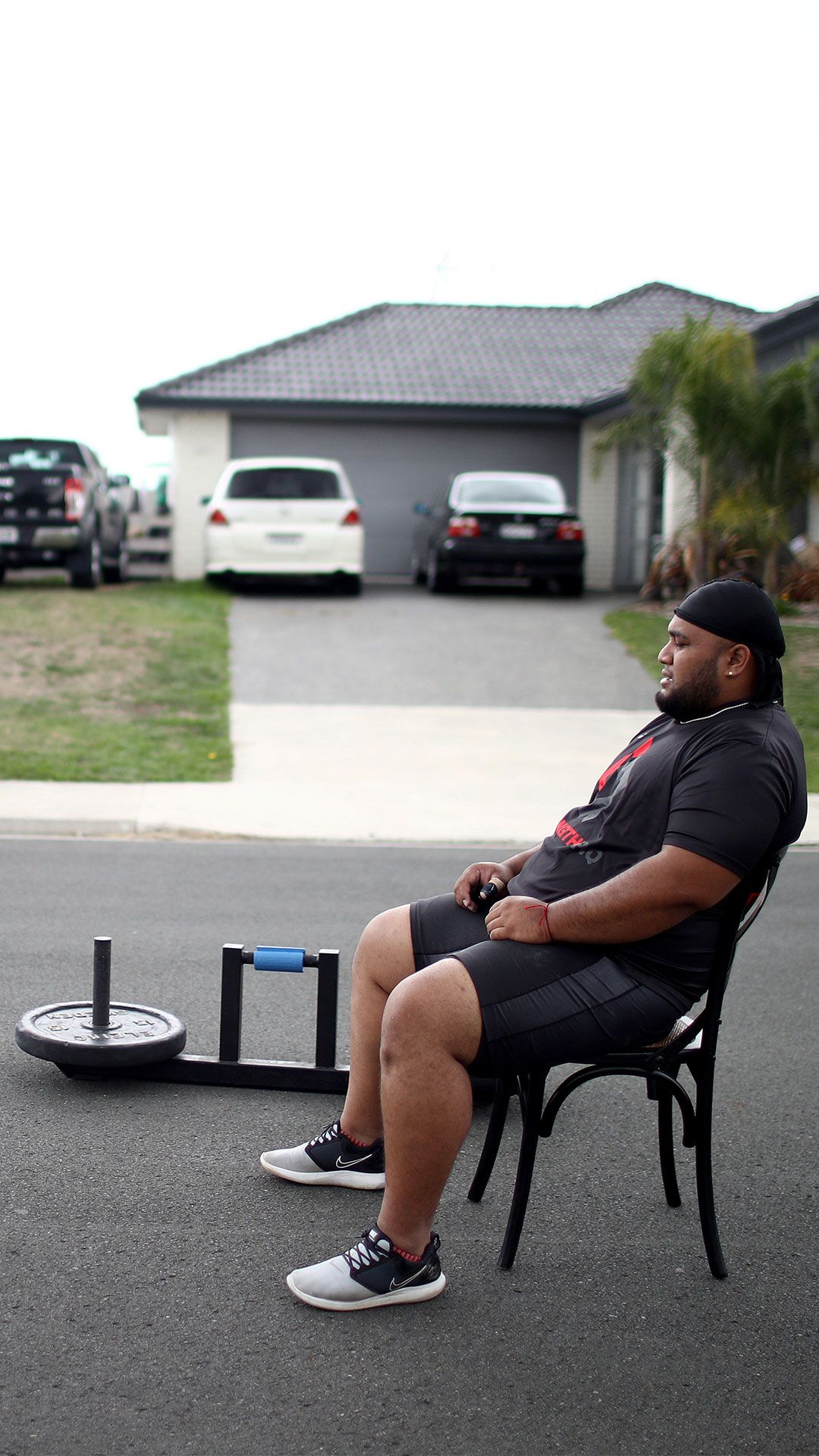 /**span.lightHighlight**/So, each day (weather permitting) the Commonwealth Games gold medallist sets up his mats at the end of the driveway - the only flat slab of concrete available to him - and gets to work./*/*