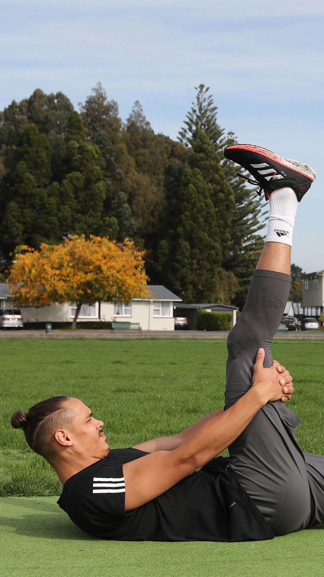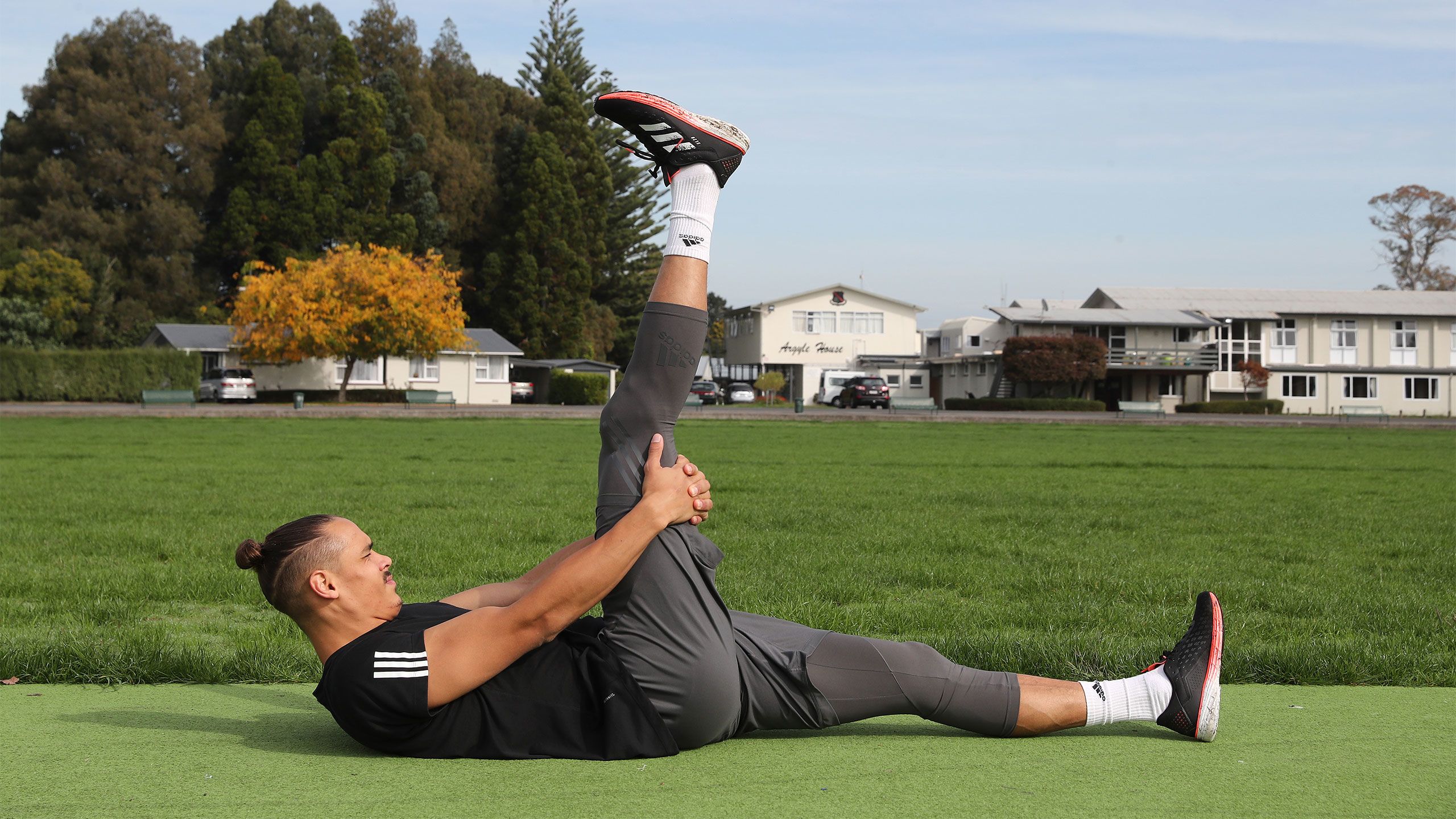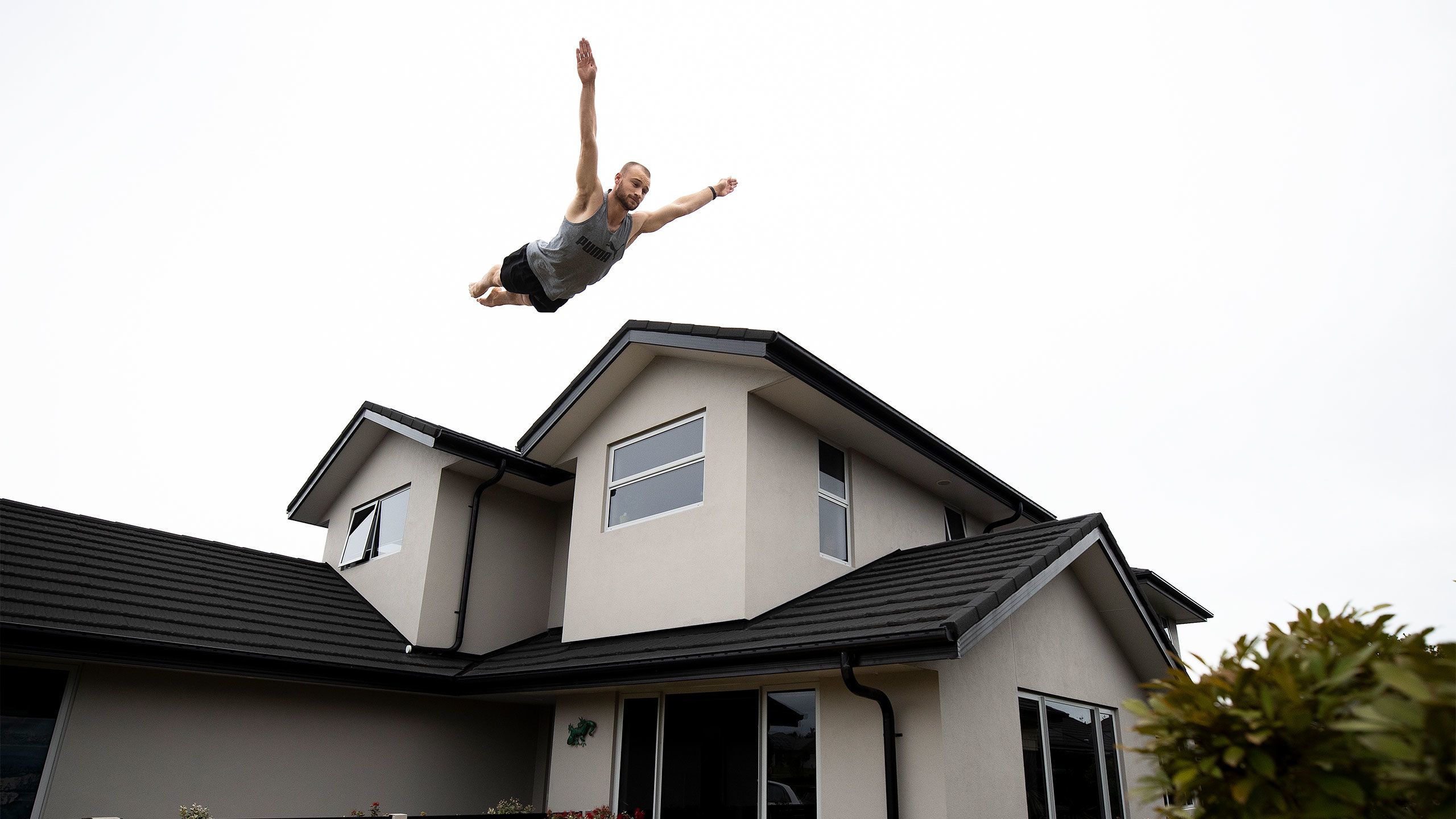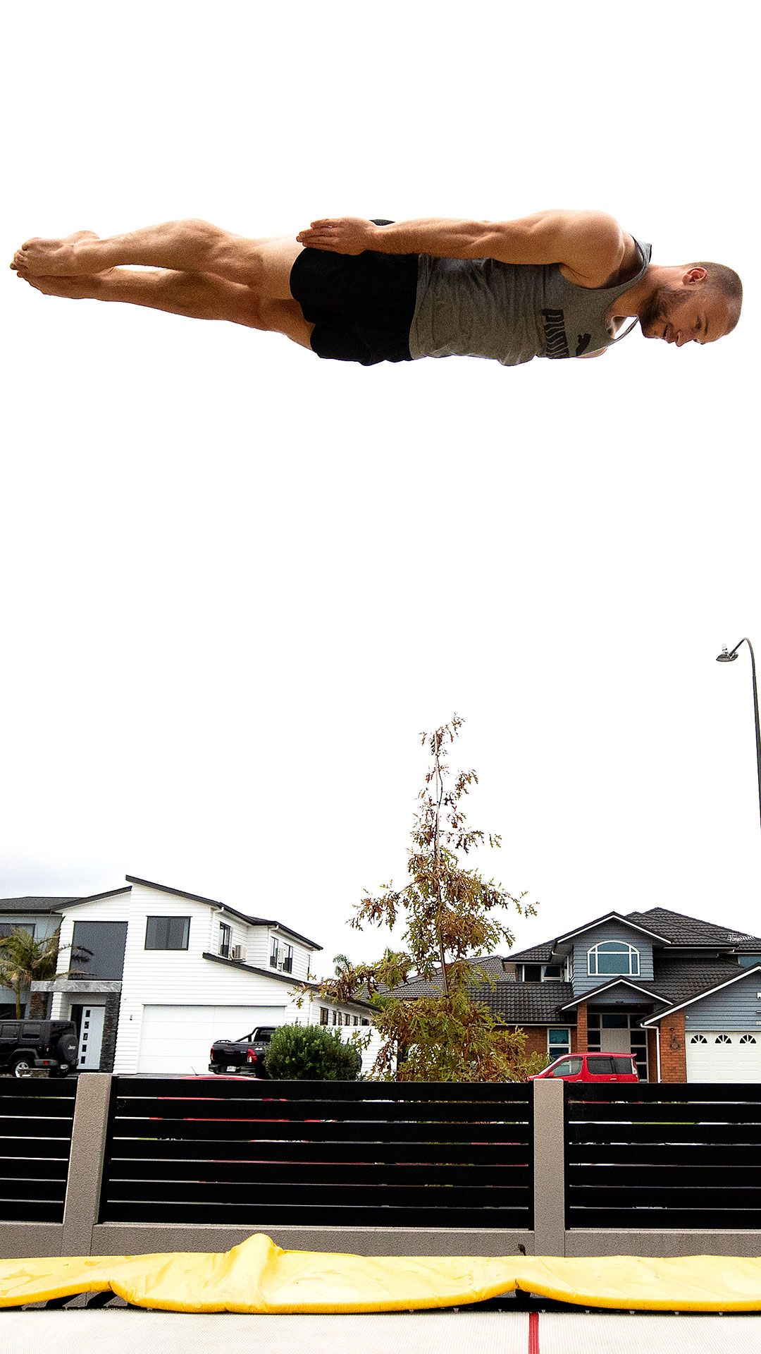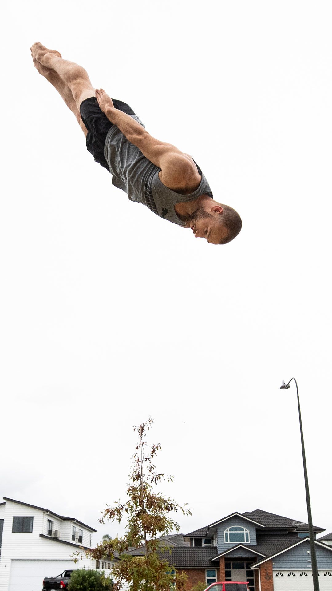 /**span.lightHighlight**/In a quiet subdivision in Karaka, Olympic trampolinist Dylan Schmidt soars high above the rooflines./*/*