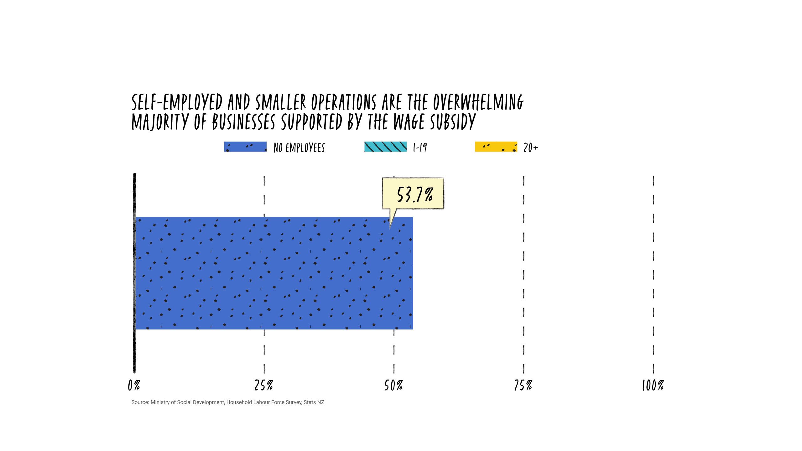 It’s perhaps unsurprising, then, that 97 per cent of all businesses who received the subsidy have fewer than 20 employees. More than half (53.7 per cent) have no staff at all - they’re ‘sole traders’ in the purest sense of the term.