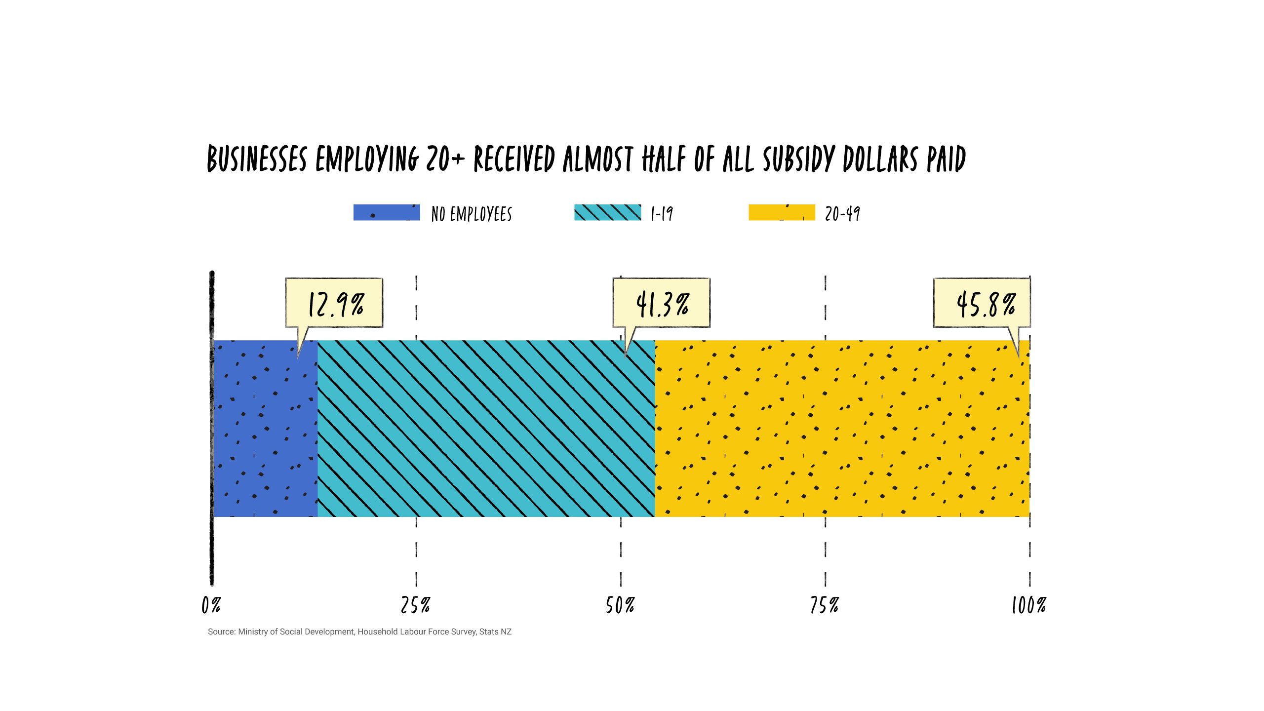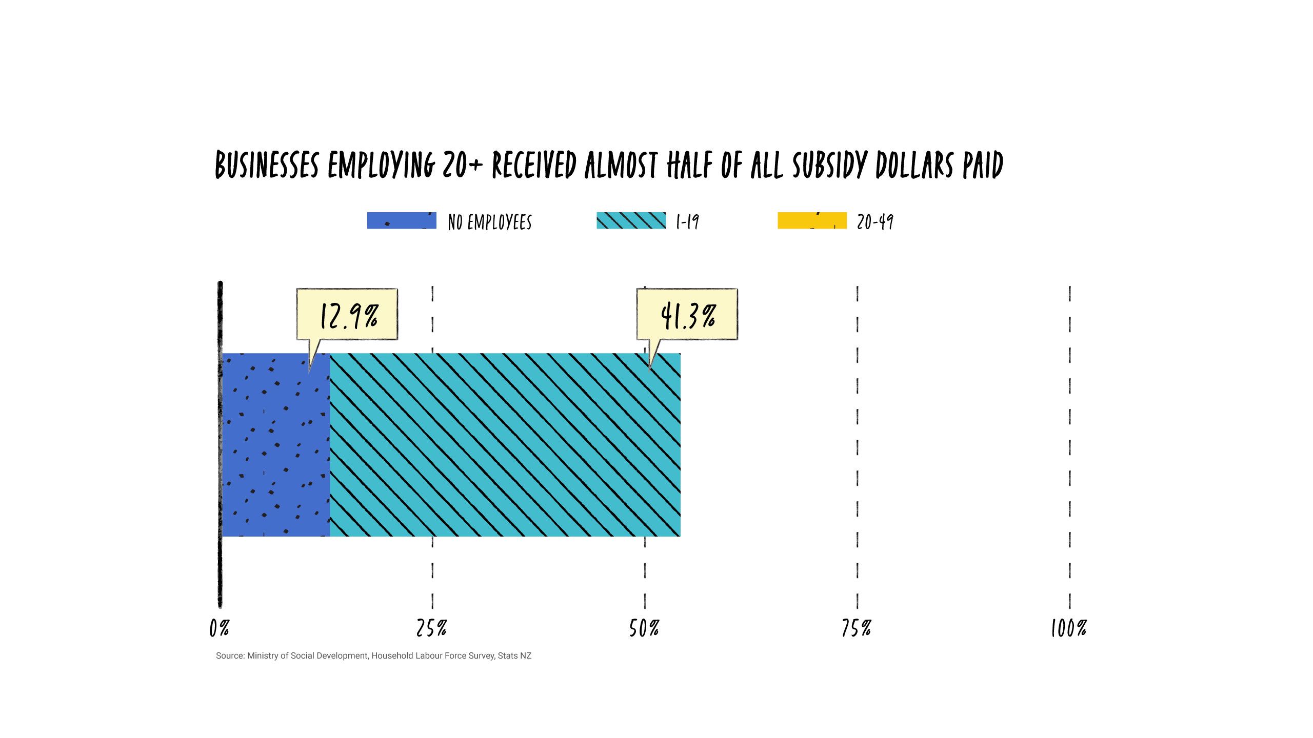 Even accounting for the differences in scale, businesses with fewer than 20 employees received 54 per cent of the $11b paid out.