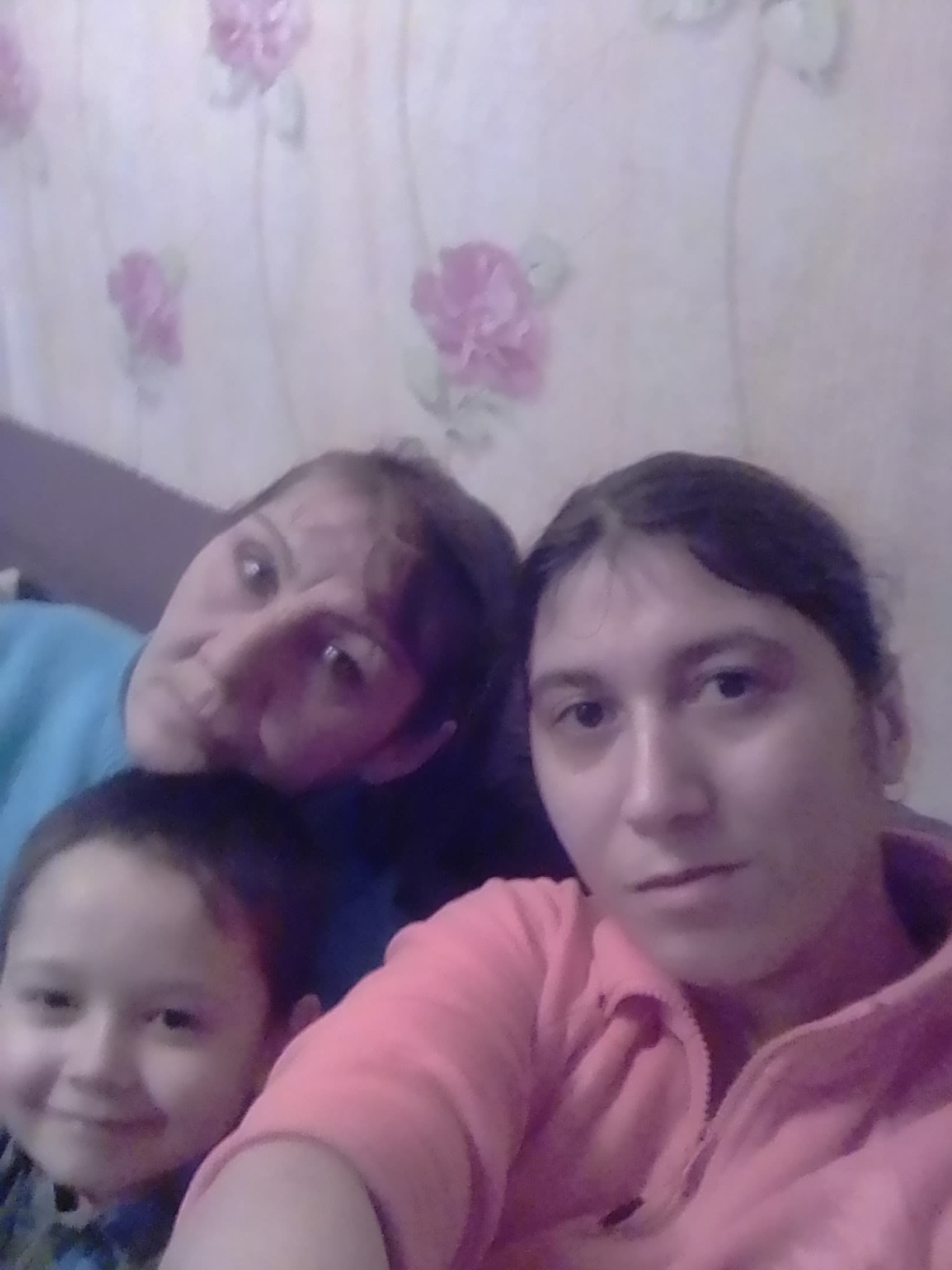 Emma's mum Galina at home with Yulia, and her yougest son Ivan.