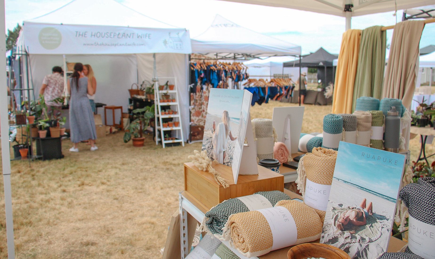 ‘Happy Summer Sunday Vibes’ is the catchphrase of organisers who invite you to sit and relax on blankets and pillows spread beneath an ancient pōhutukawa tree. Up to 80 stallholders from as far away as Auckland, Waikato and Tauranga sell produce, plants, garden art, jewellery, clothes, meat, cheese and even kombucha by the crate.