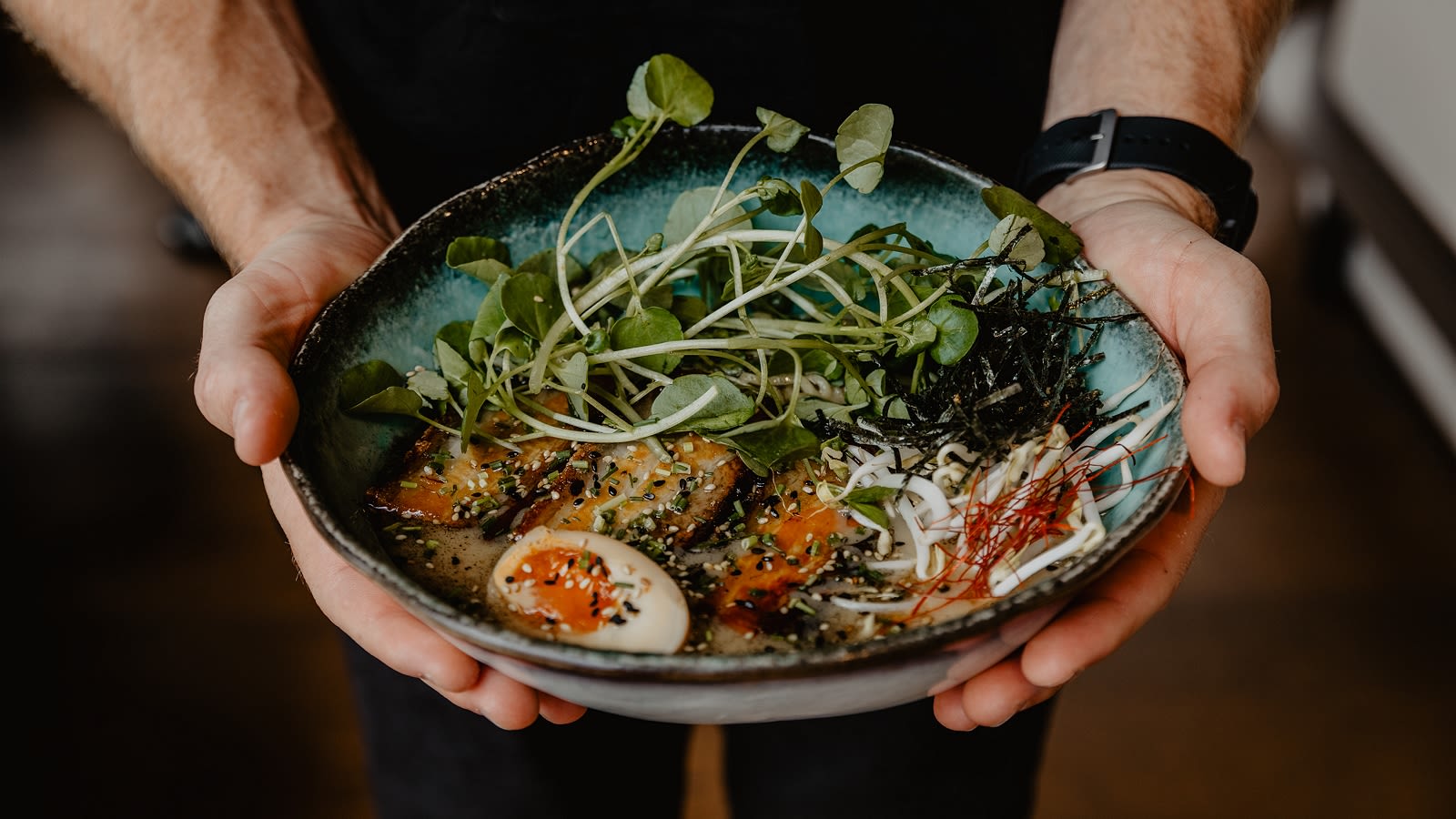 Try hāngī-style pork belly and watercress ramen at Izakai. SUPPLIED