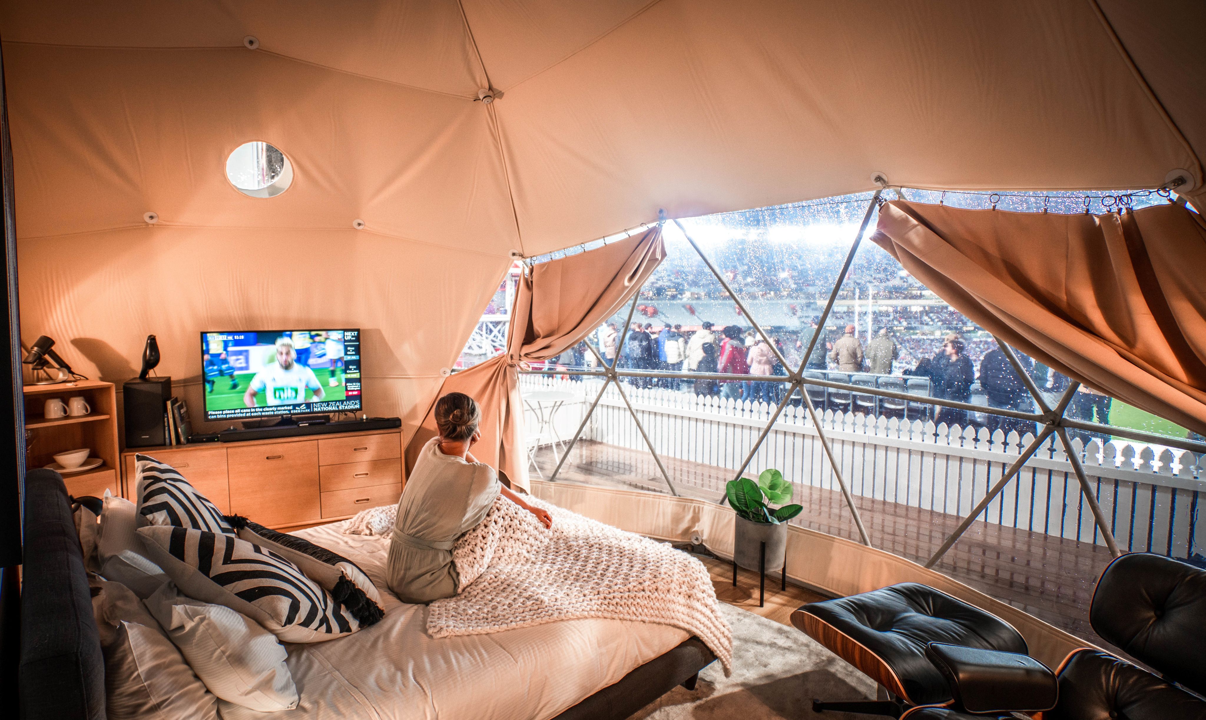 Usually glamorous camping is reserved for the quietest parts of the country; places where cell phone reception is weak, and birdsong is strong. Eden Park has done the complete opposite, becoming the world's first stadium to install Staydium Glamping domes. That means you get the whole place - which can fit up to 50,000 people - to yourself. There are two options when staying: a game-day or "stadium to yourself" experience. It's only a 50-metre walk from the car park to the tent, which is filled with designer furniture and has a small self-contained bathroom. Read more
