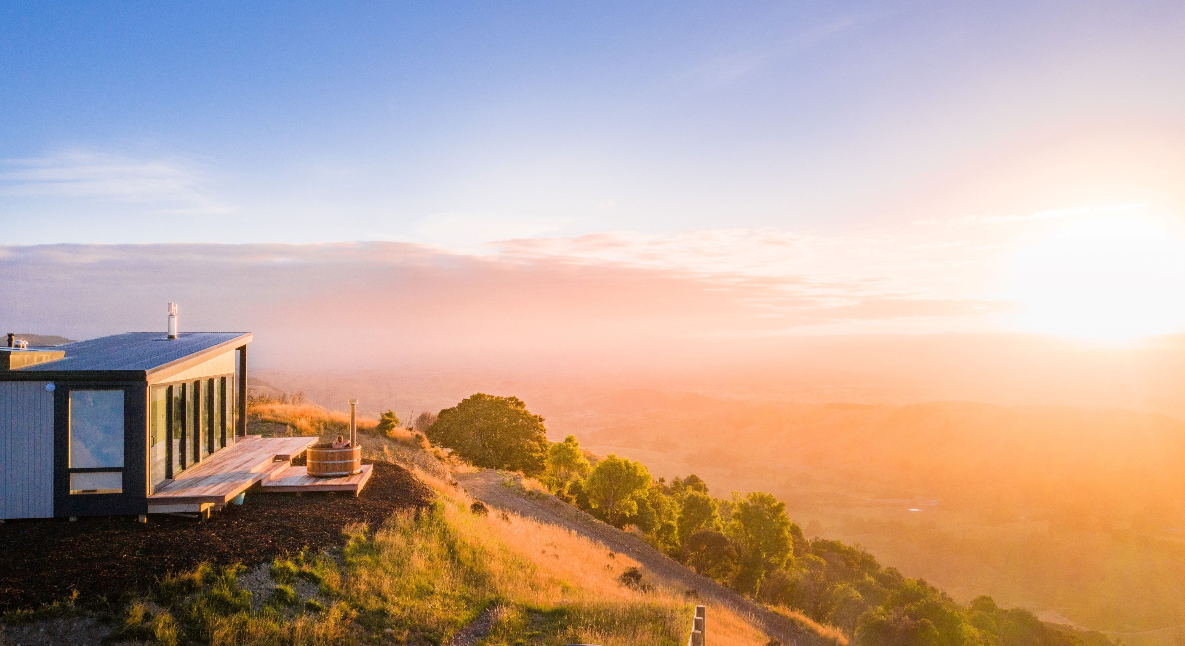 Little-known off-grid cabin The Matchbox sits at the top of a hill near Waimate with sweeping coastal views. The well-appointed cabin runs on solar power and is split into two sections. One 'wing' has a super-comfy bed with an indoor fireplace and a skylight, so you can stargaze from bed. The other has a luxurious shower – big enough for two – and a basic kitchen. Outside you'll find the cabin’s highlight: a wood-fired hot tub with sweeping views of the farmland and coast below. On a clear night, it’s the perfect place for stargazing. Read more