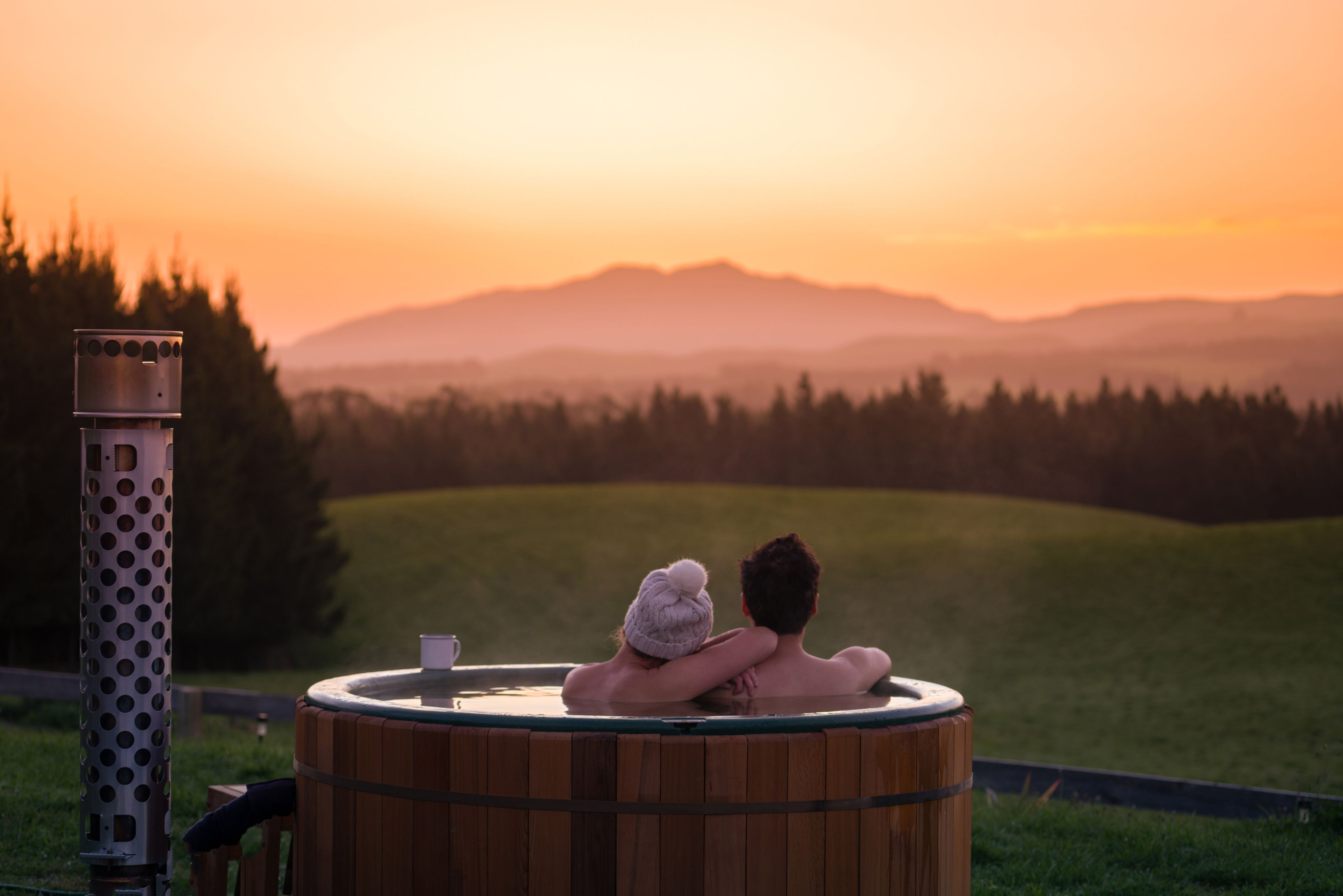 Black Rocks Retreat is just over an hour's drive from the central city, and has a luxury cabin overlooking Auckland's Manukau Harbour, with views of the western side of the city. The cabin is a little like a flash hotel room with beachfront access and kayaks to explore the water. But the highlight is the outdoor bath, overlooking the harbour, where you and your loved one can unwind in peace. Read more