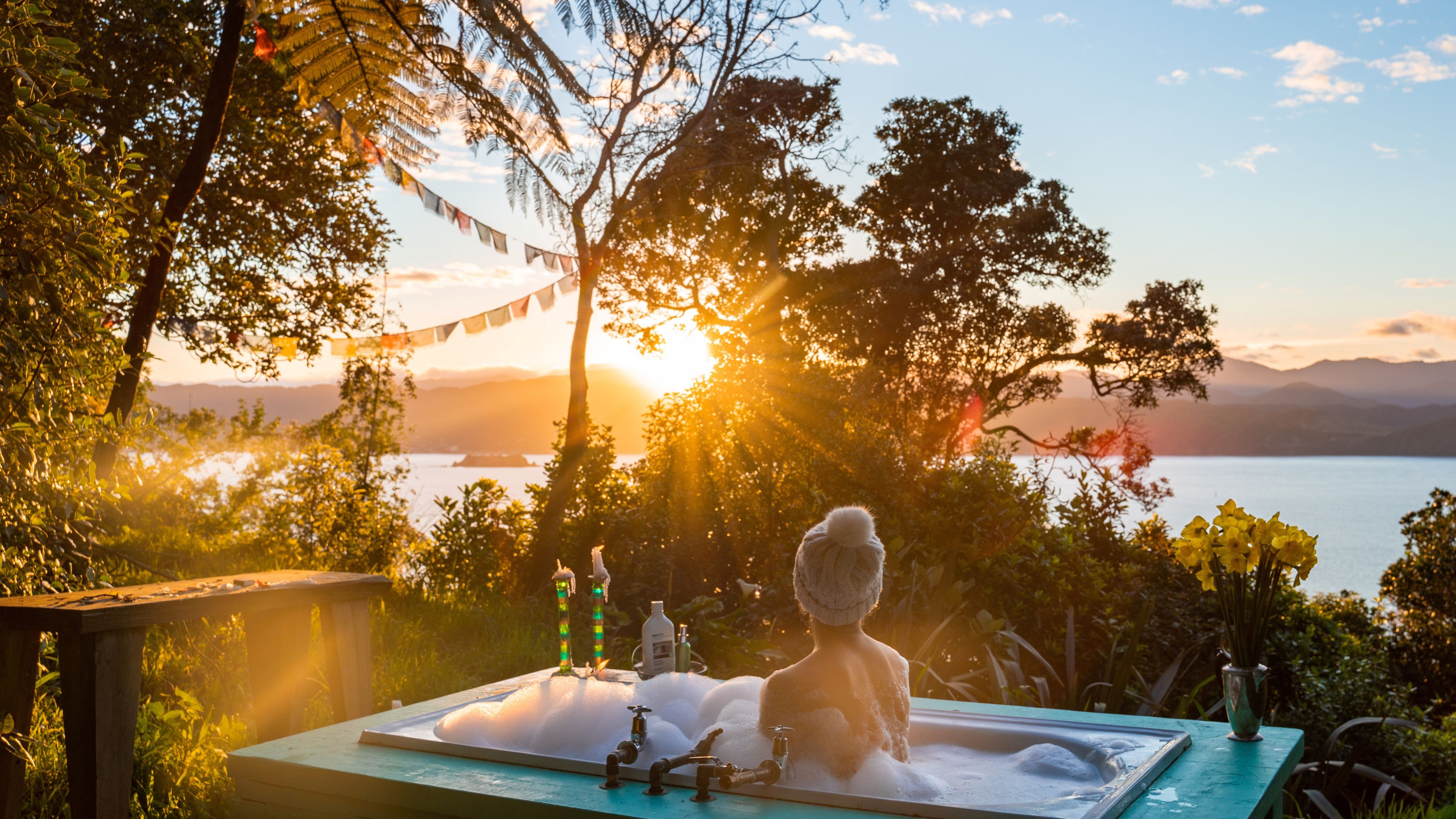 One of the country's coolest baches is tucked away in dense bush overlooking Wellington Harbour. Just 10 minutes from the airport on the Miramar Peninsula, it's a steep five-minute walk to the bright blue Boho Bach. The house is full of bohemian brilliance but the highlight is a large outdoor bath overlooking the harbour. Big enough for two, it's possibly the most relaxing little spot in all of Wellington. While soaking, you're bound to be visited by a few of the friendly locals: tui, fantails and even woodpigeons. Read more
