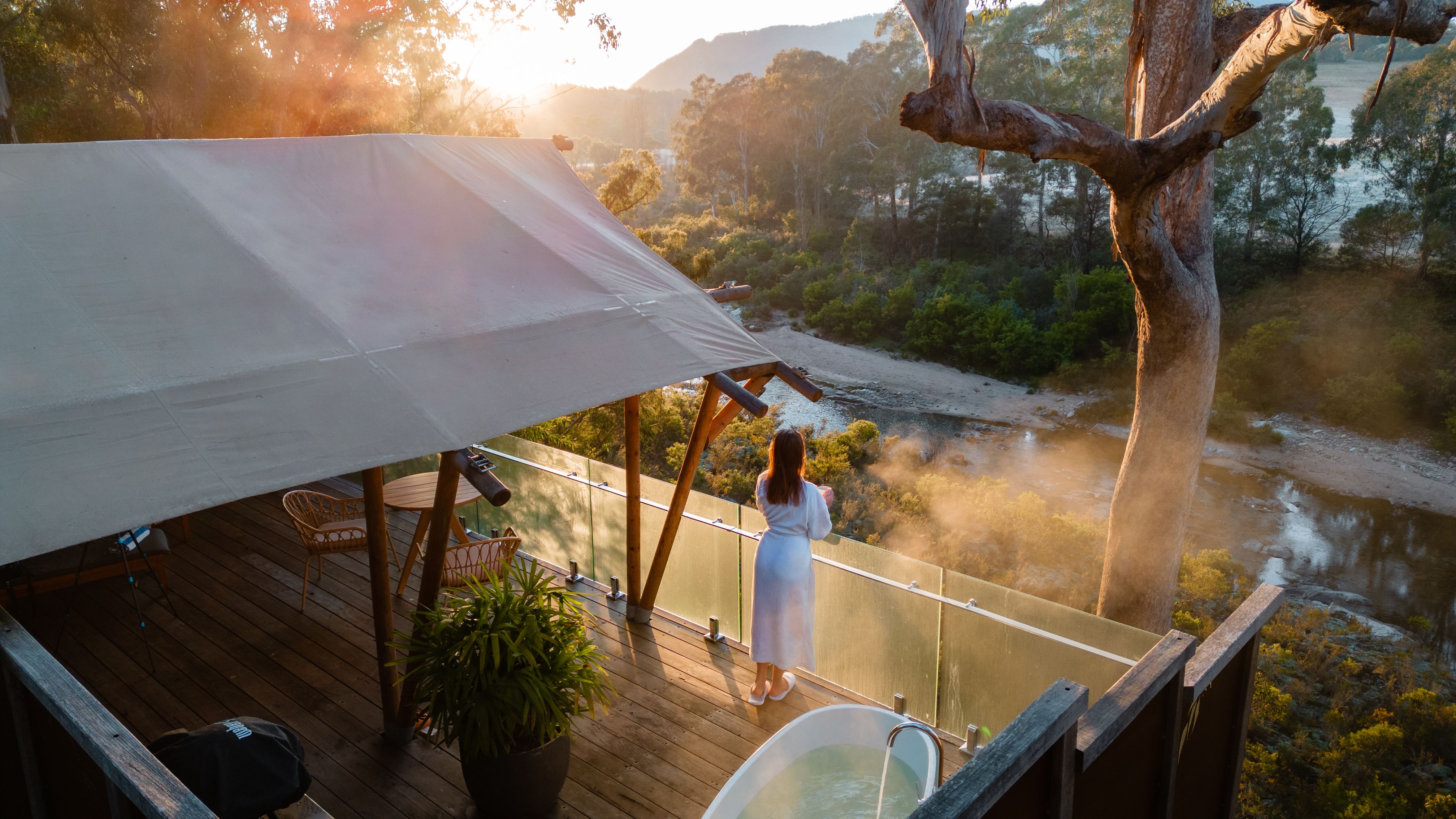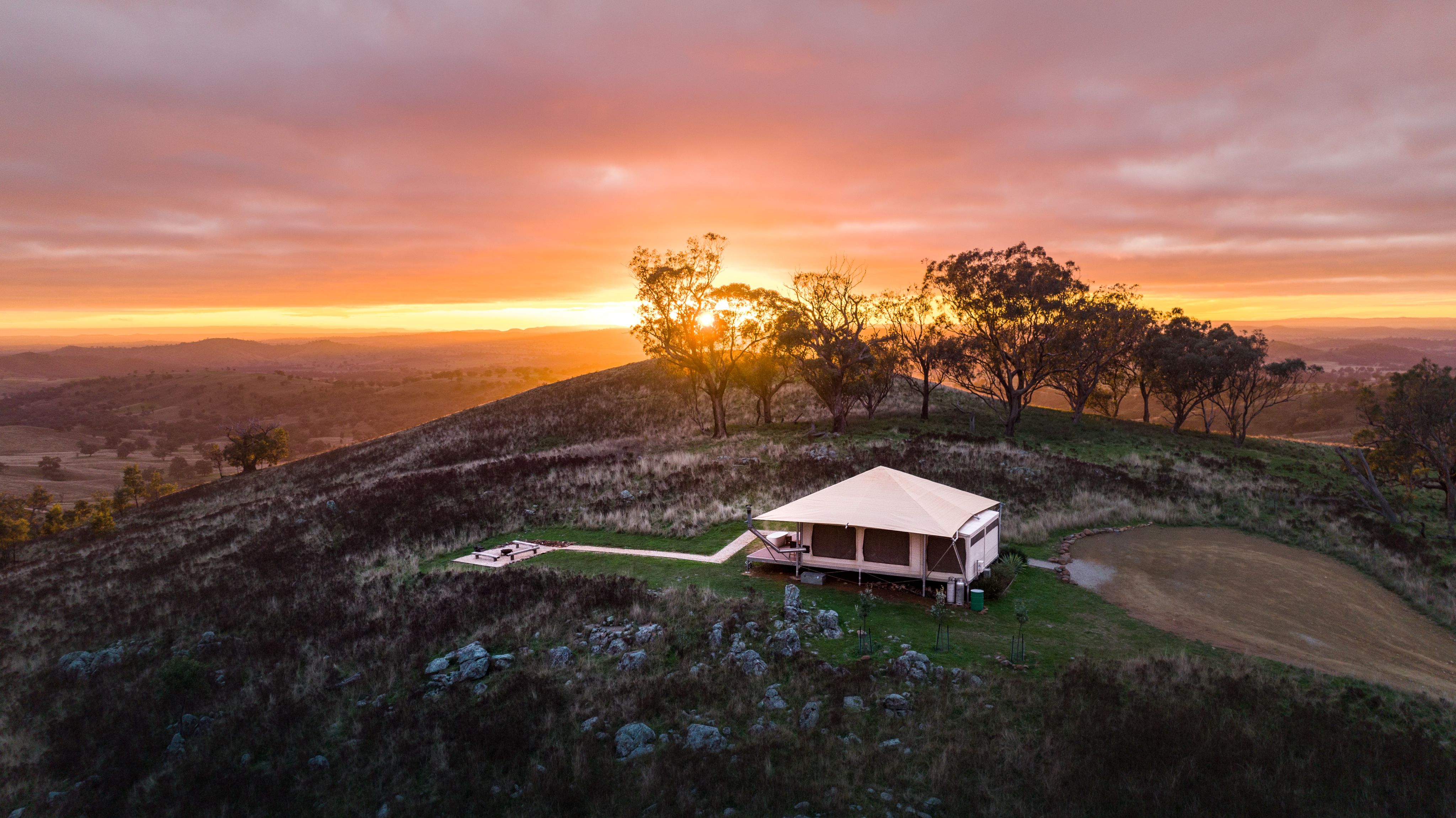 Sierra Escape is found on the rolling hills outside Mudgee, a small town with a big wine scene. The 280-hectare property has five adults-only glamping tents scattered among the hills - it's like a five-star hotel in the wild. Each tent has an opulent indoor tub, kitchen and bathroom, but the pièce de résistance is a freestanding outdoor bath overlooking the countryside. The escape also has a resort-style infinity pool and there are also lots of walks where you can go kangaroo spotting (that's if they don't come to you first). Read more
