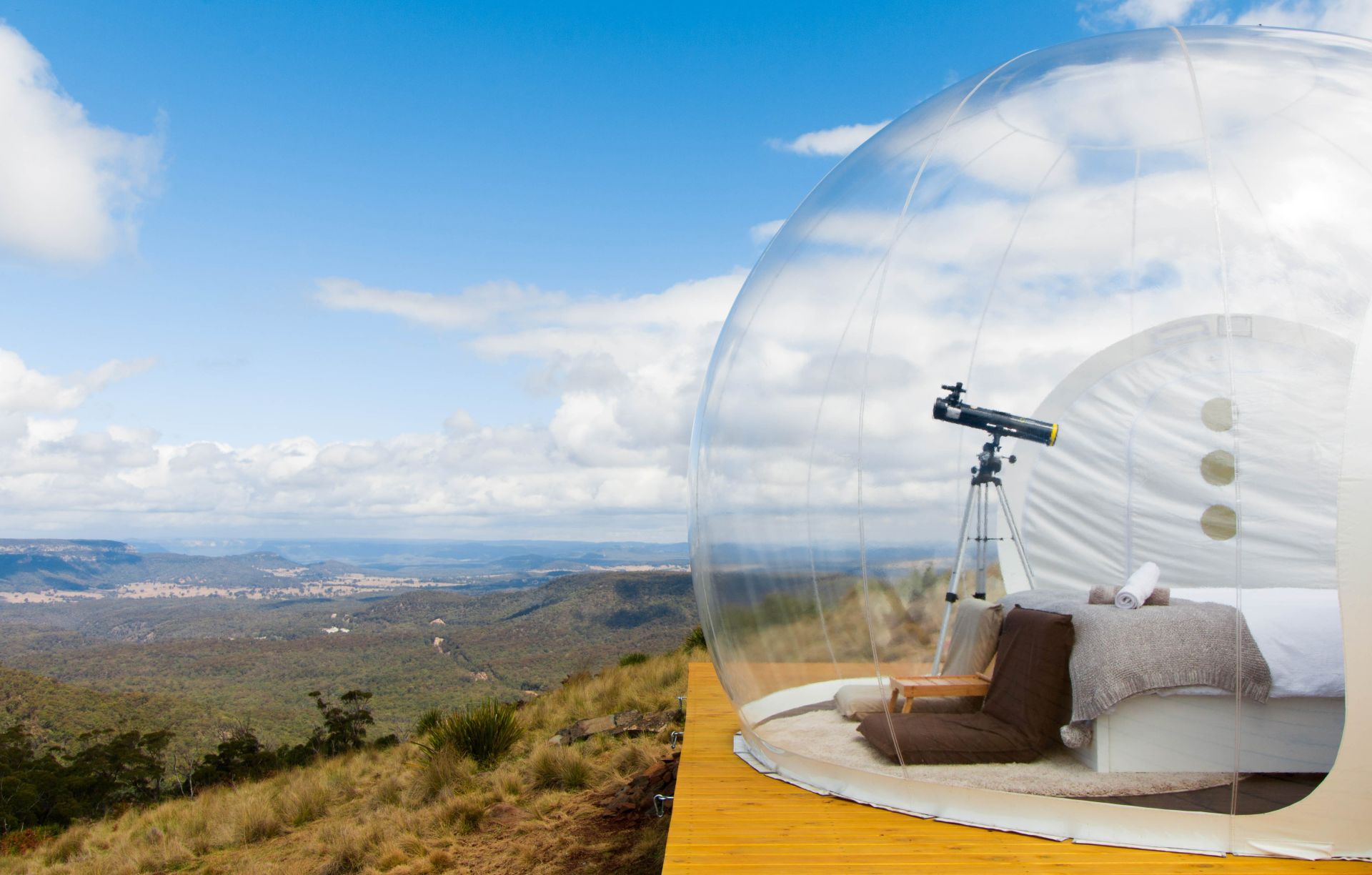 Around 200km from Sydney, on a working farm in the Central Tablelands, are Australia’s first Bubbletents - transparent hideaways where you can completely immerse yourself in the surrounding landscape. There are three tents, each in their own secluded spot, with a queen bed, hot tub, and telescope. The exact location remains a secret until you book, but you can be sure the views are spectacular - the tents overlook Capertee Valley, the second-largest canyon in the world after the Grand Canyon.
