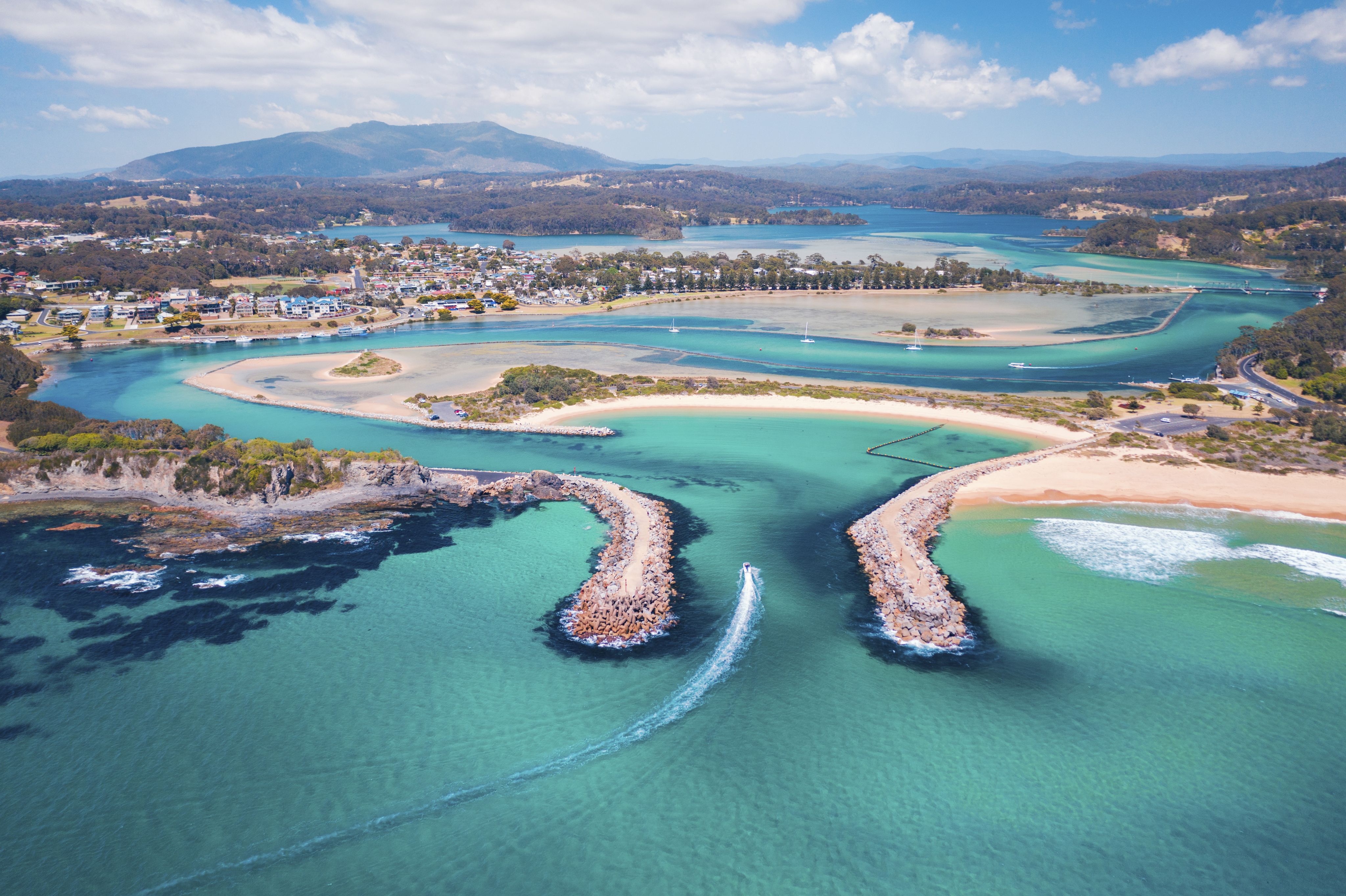 The setting is beyond lovely in Merimbula, found six hours south of Sydney. Lagoons, lakes and waterways blue as peacock feathers are embraced in bushland that rises up hillsides and spritzes the breeze with the scent of eucalyptus. A string of voluptuous beaches allows you to pick from a daily menu of desires: snorkelling off Bar Beach, surfing at Short Point, picking your spot to flop on six-kilometre Main Beach. The charm is old-fashioned and makes you think of childhood holidays. Read more